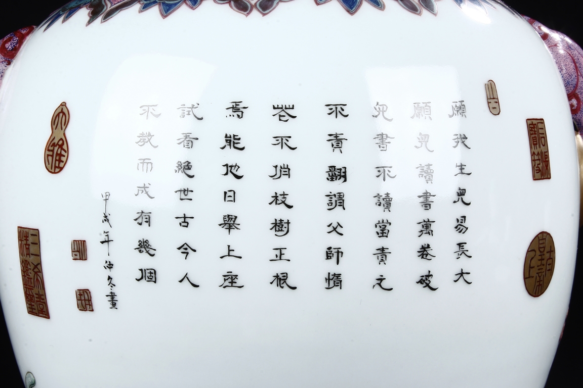 此瓶畫工精細,佈局嚴謹,所畫人物生動,所寫詩文寓意深遠