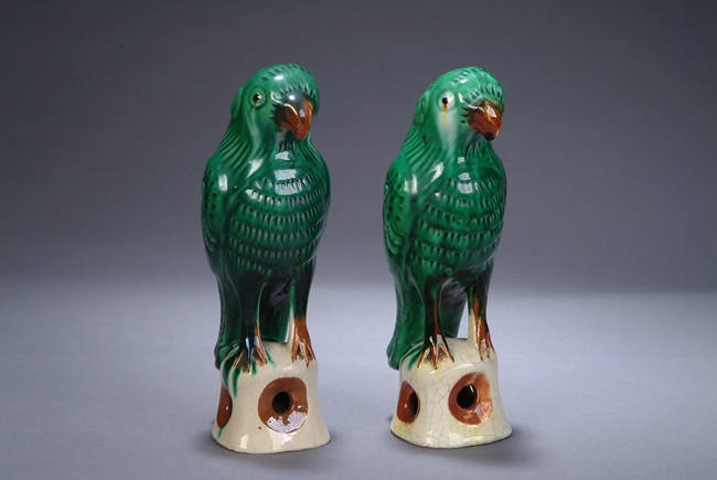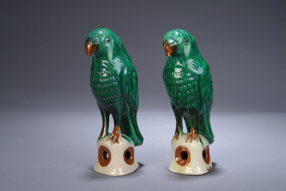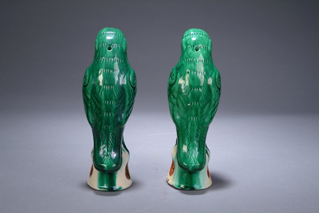 A PAIR OF SANCAI GLAZED PARROTS 民國 三彩鸚鵡一對