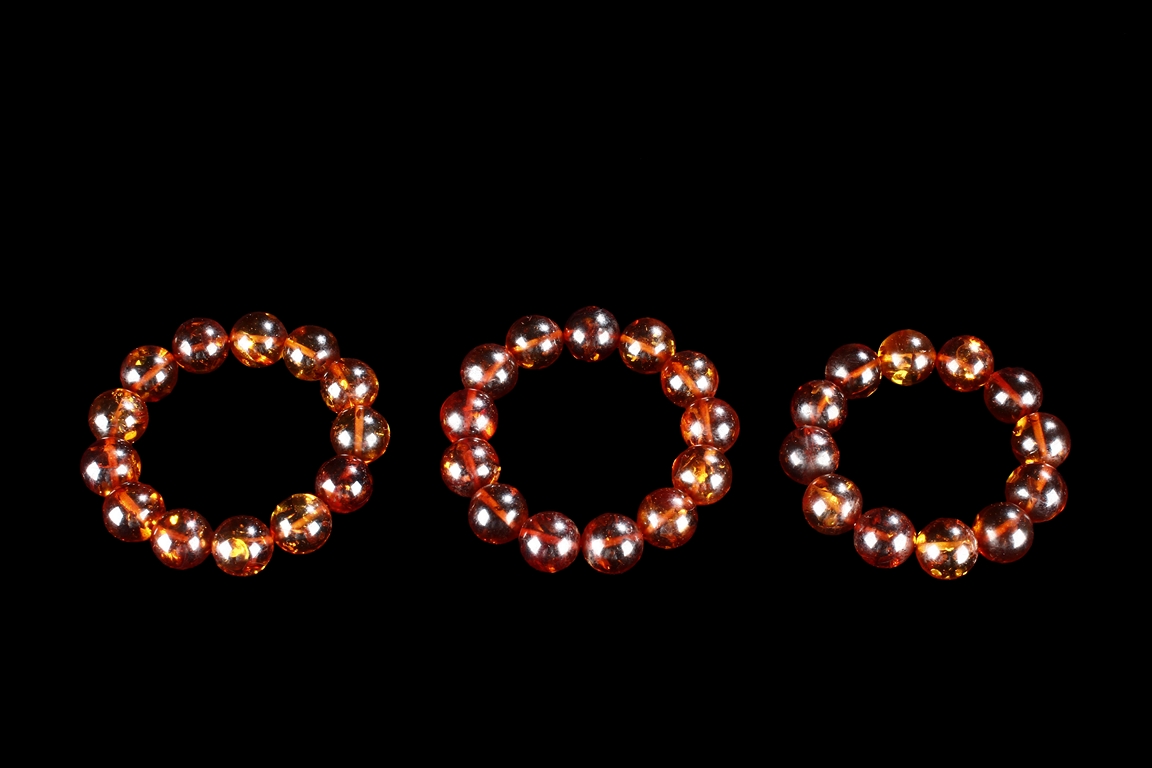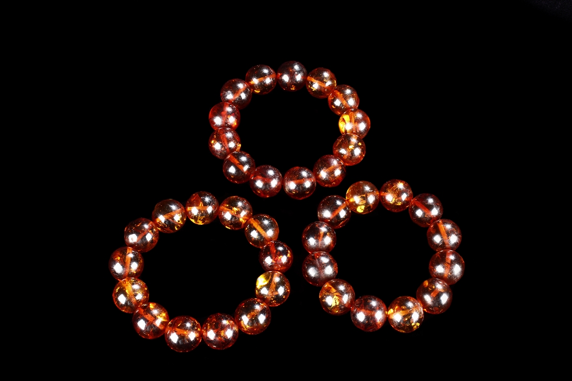 The three amber beads bracelet all with similar sized amber beads at around 18m, with good translucency and small inclusions. One bracelet has 12 beads, while other two have 13 beads. Qing Dynasty period.
