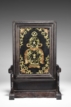 A SILVER AND GOLD GILT BRONZE 'BODHISATTVA AND WORSHIPERS' PLAQUE MOUNTED TABLE SCREEN