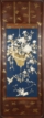 A JAPANESE "FLOWERS AND HANGING VASE" APPLIQUE HANGING PANEL