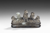 A BRONZE "MYTHICAL BEASTS" BRUSH REST