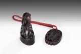 A BUFFALO HORN CARVED STAMP SEAL AND PENDANT