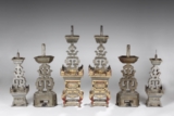 A GROUP OF SIX CANDLE HOLDERS IN THREE PAIRS