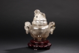 A CARVED CRYSTAL TWO-HANDLED TRIPOD CENSER