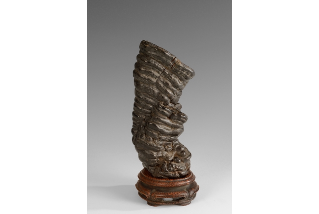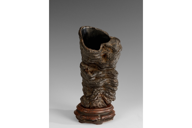 A Lingzhi fungus brush pot with both the interior and the bottom lacquered in a conical shape