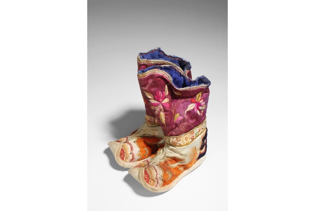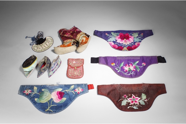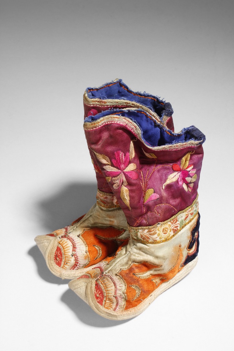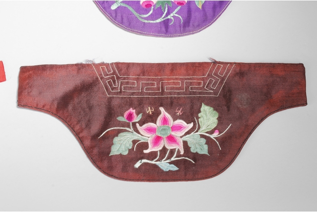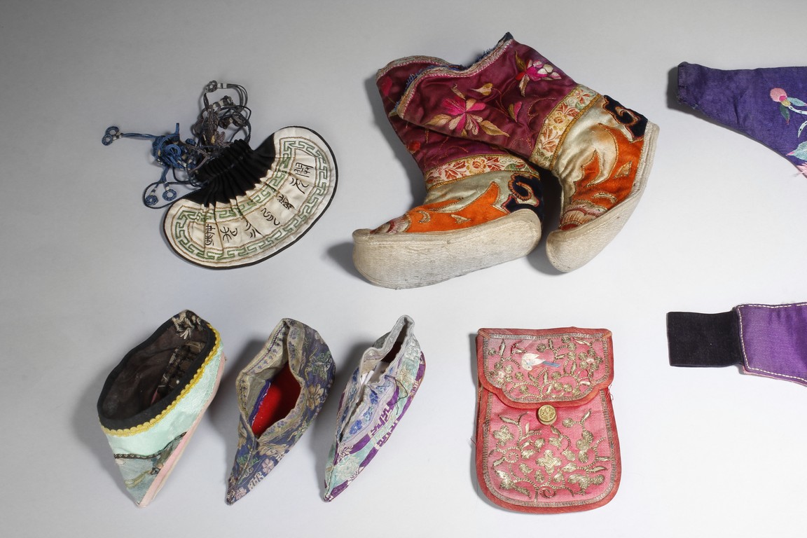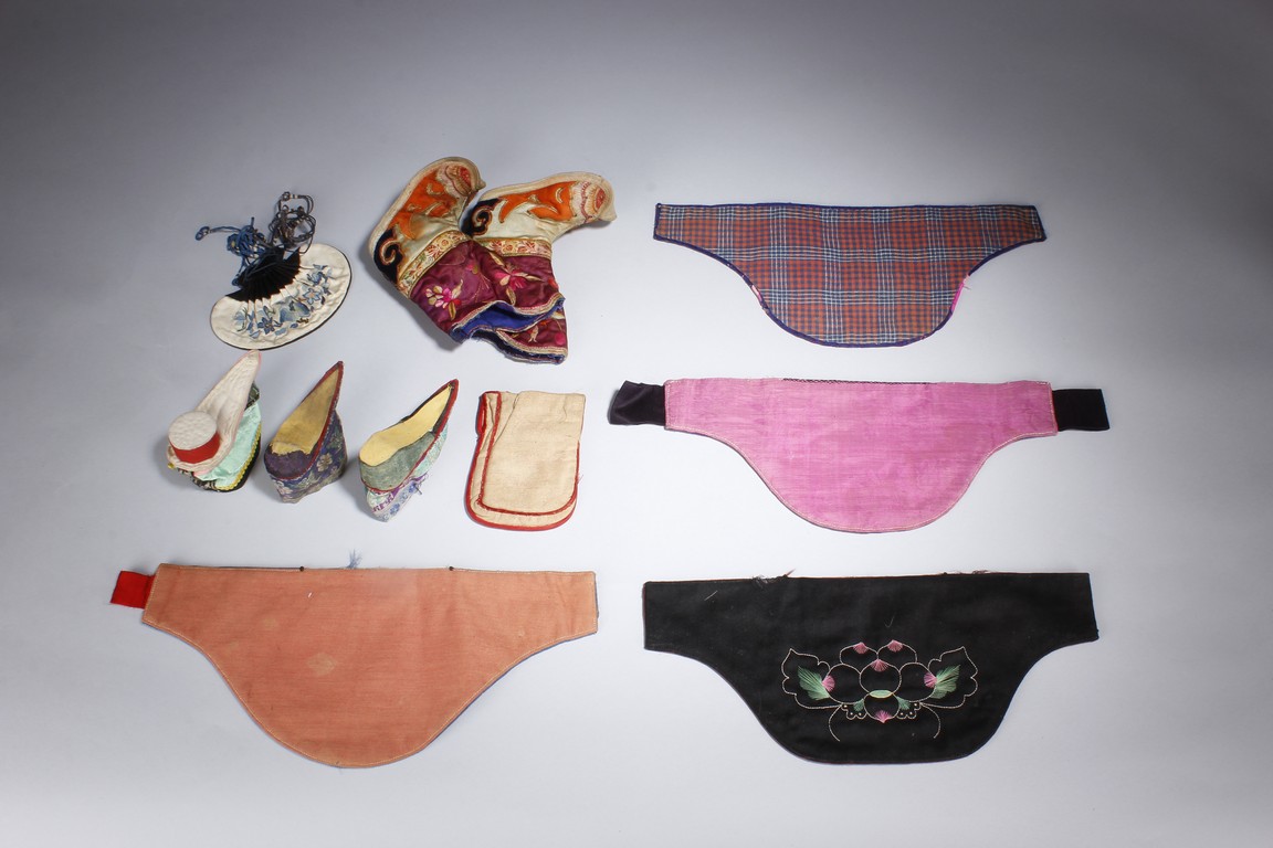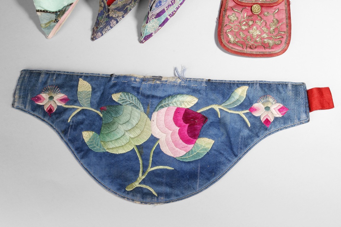A GROUP OF EMBROIDERY PIECES 絲繡品四件, 小繡花靴子一對
