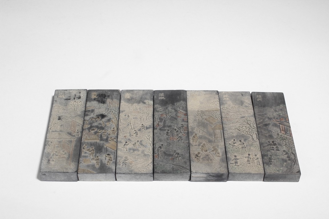 This stone carved paper weight set have seven pieces