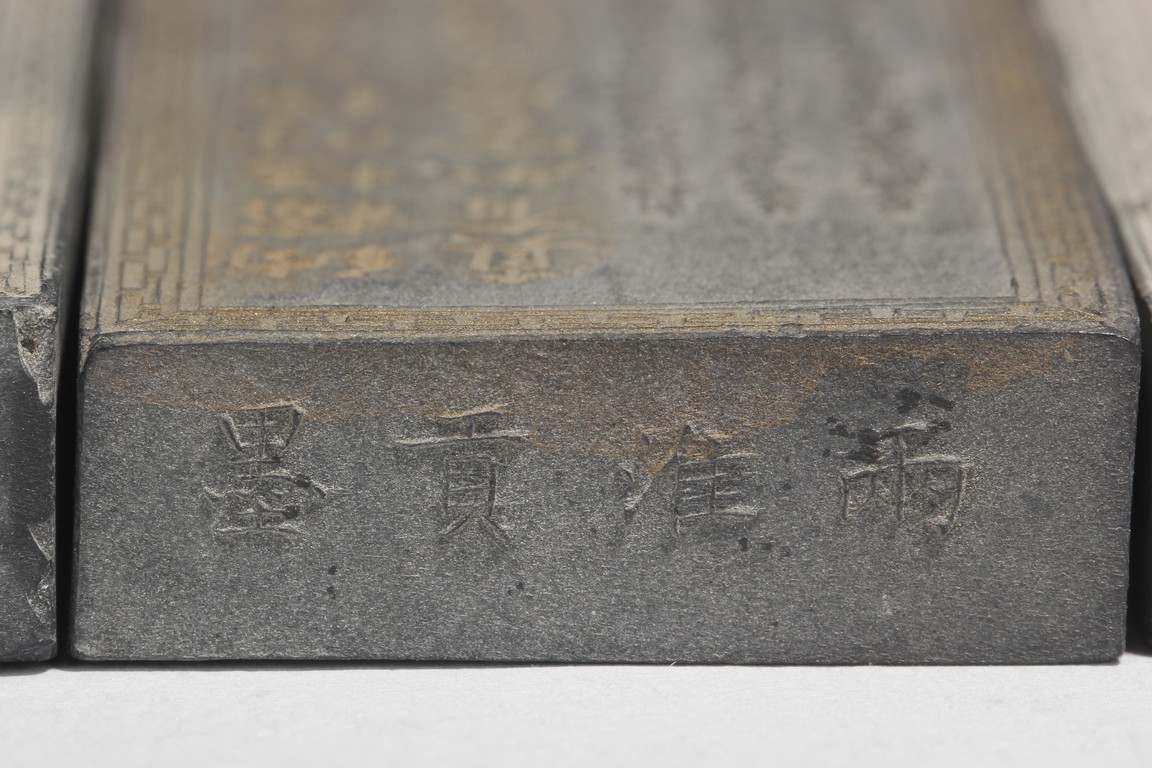 with motif of a lively village scene on the front and Chinese text and marks on the back.