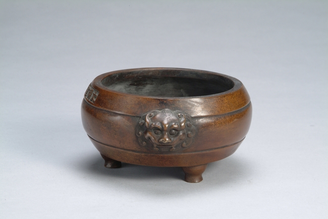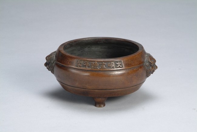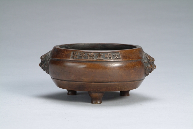 with two sides cast with two lion head handles and six character mark of "XUANDE" in relief on upper body.