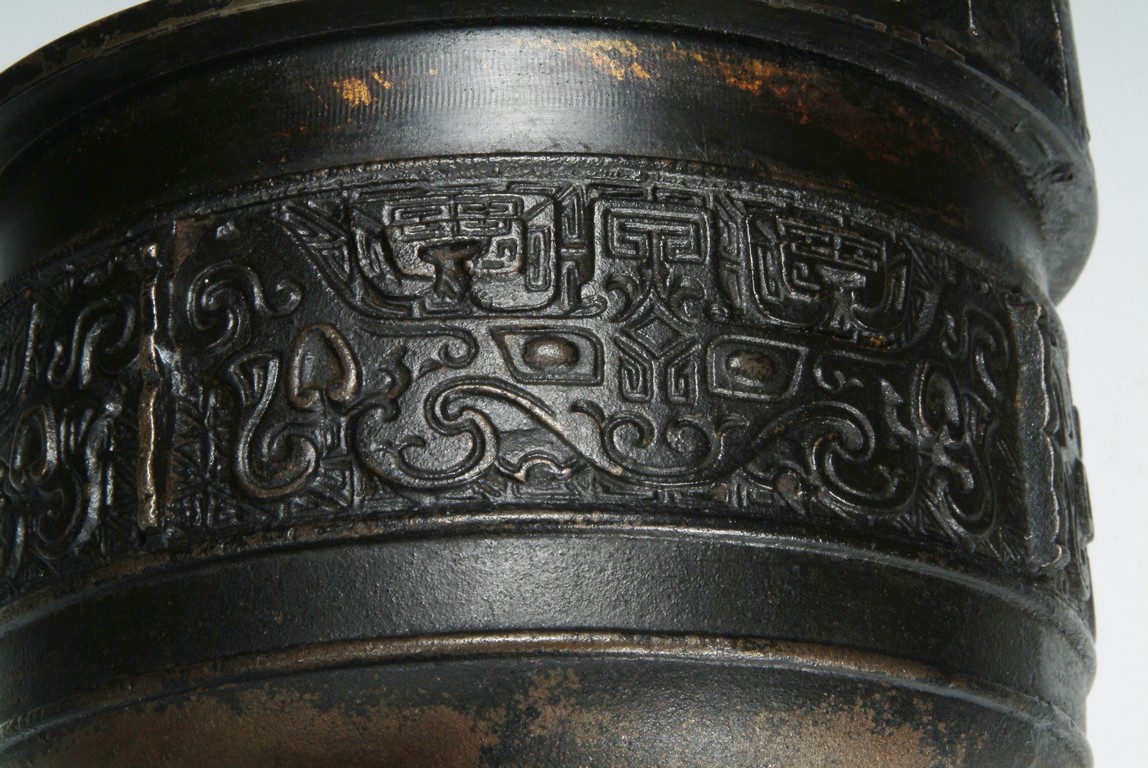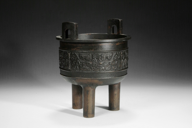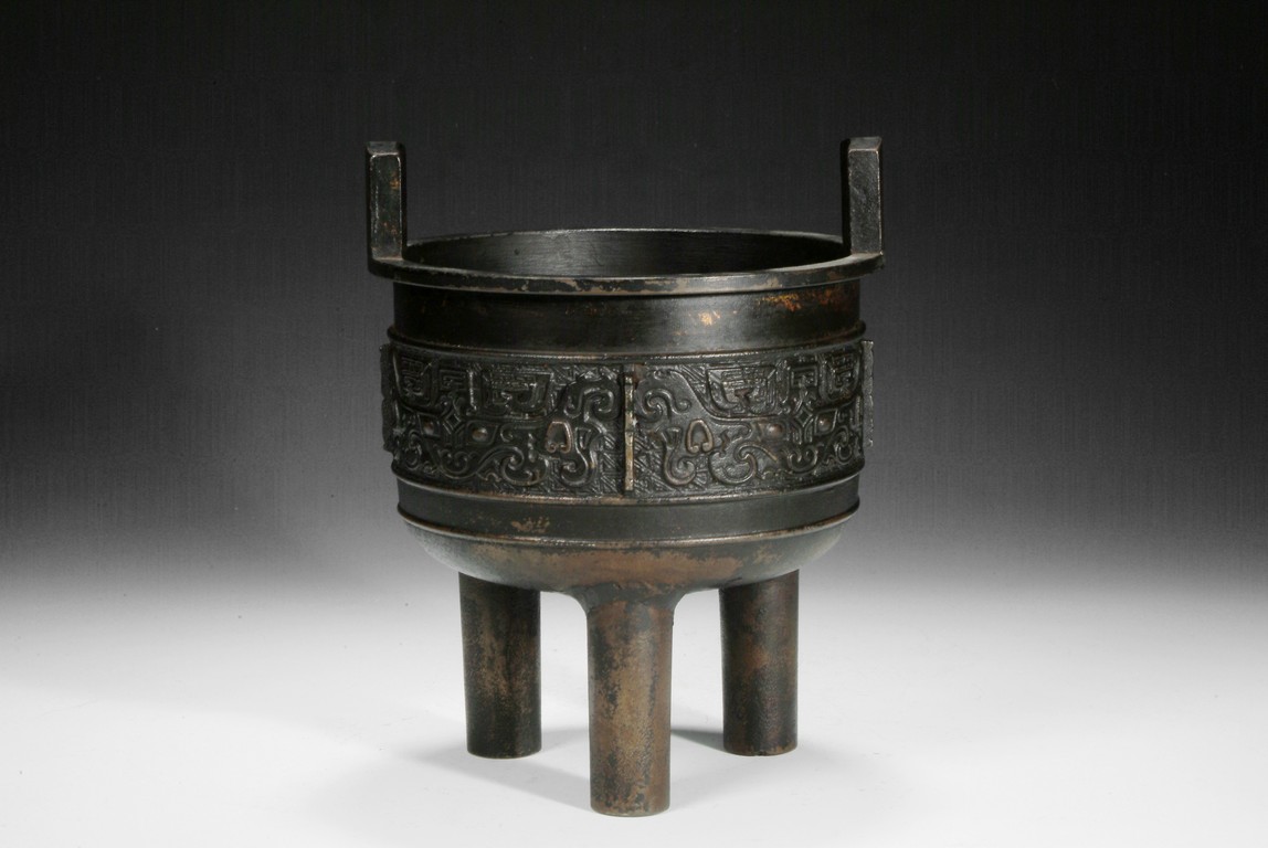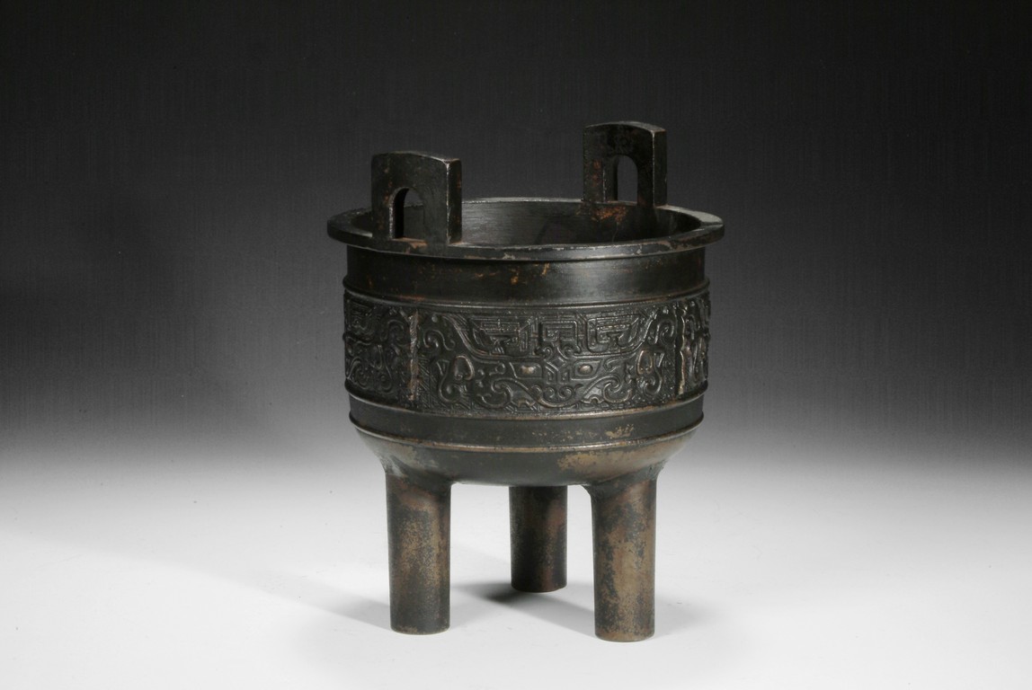 A BRONZE TRIPOD VESSEL DING"