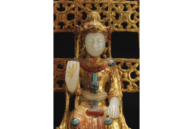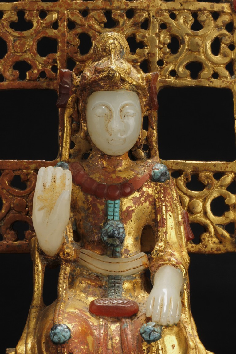 A GILD AND JADE INLAID "GUANYIN" 十九世紀初 南亞鎏金鑲玉觀音佛一尊