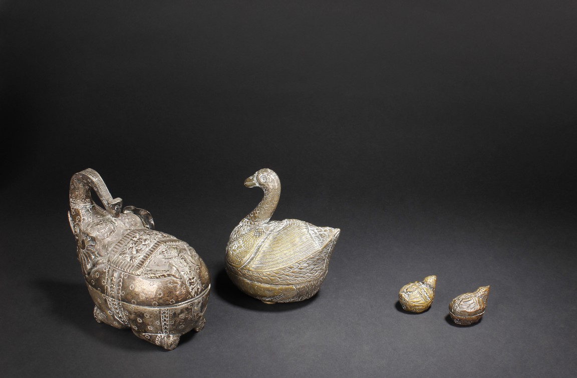 A GROUP OF BRONZE CARVING DISPLAYS 銅雕雞鴨象一組