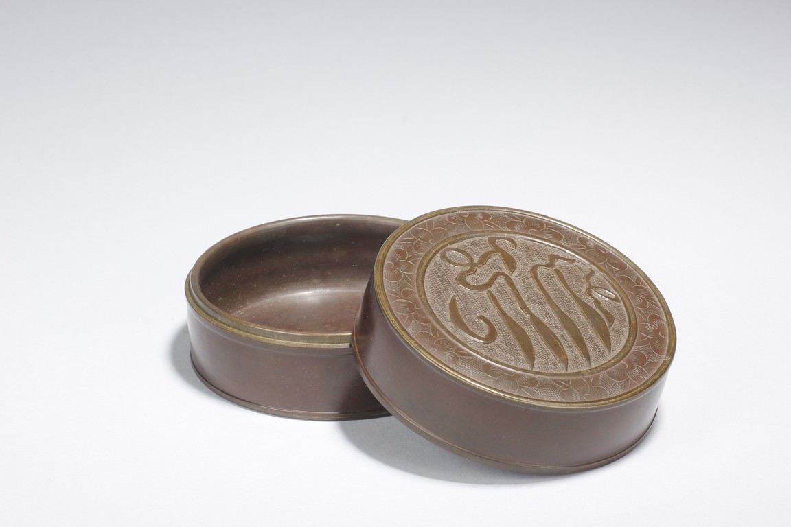 A BRONZE BOX WITH LID 回紋銅蓋盒
