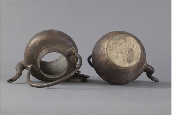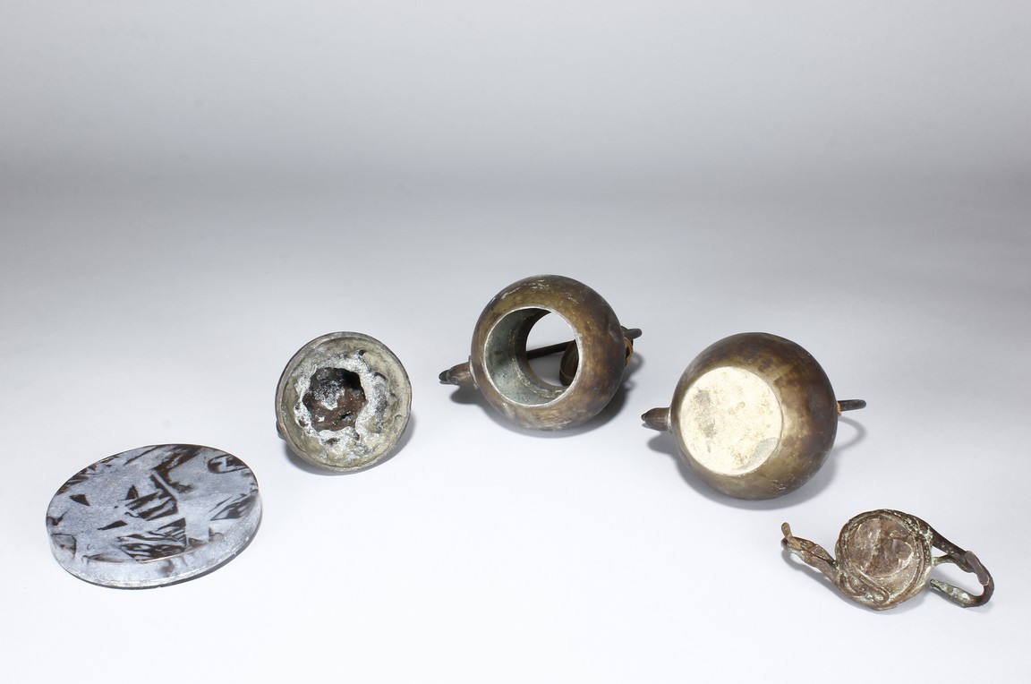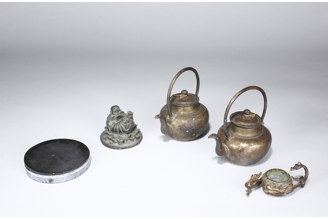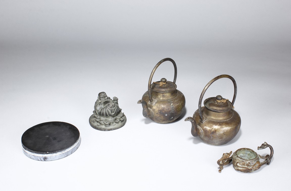 FOUR ITEMS INCLUDING BRONZE WARE AND INK STONE 銅製品一組