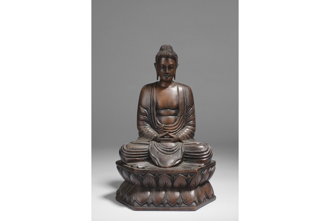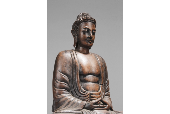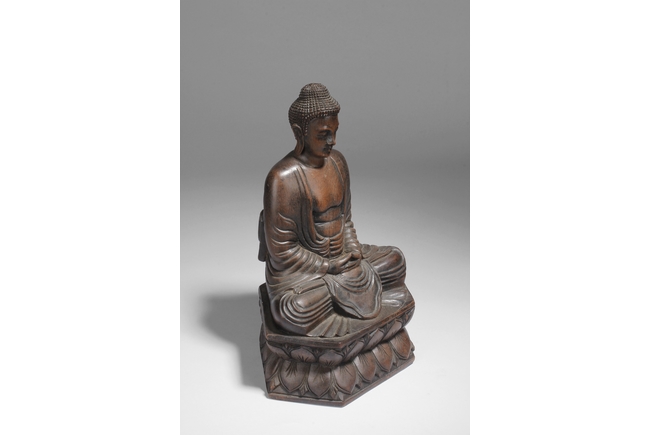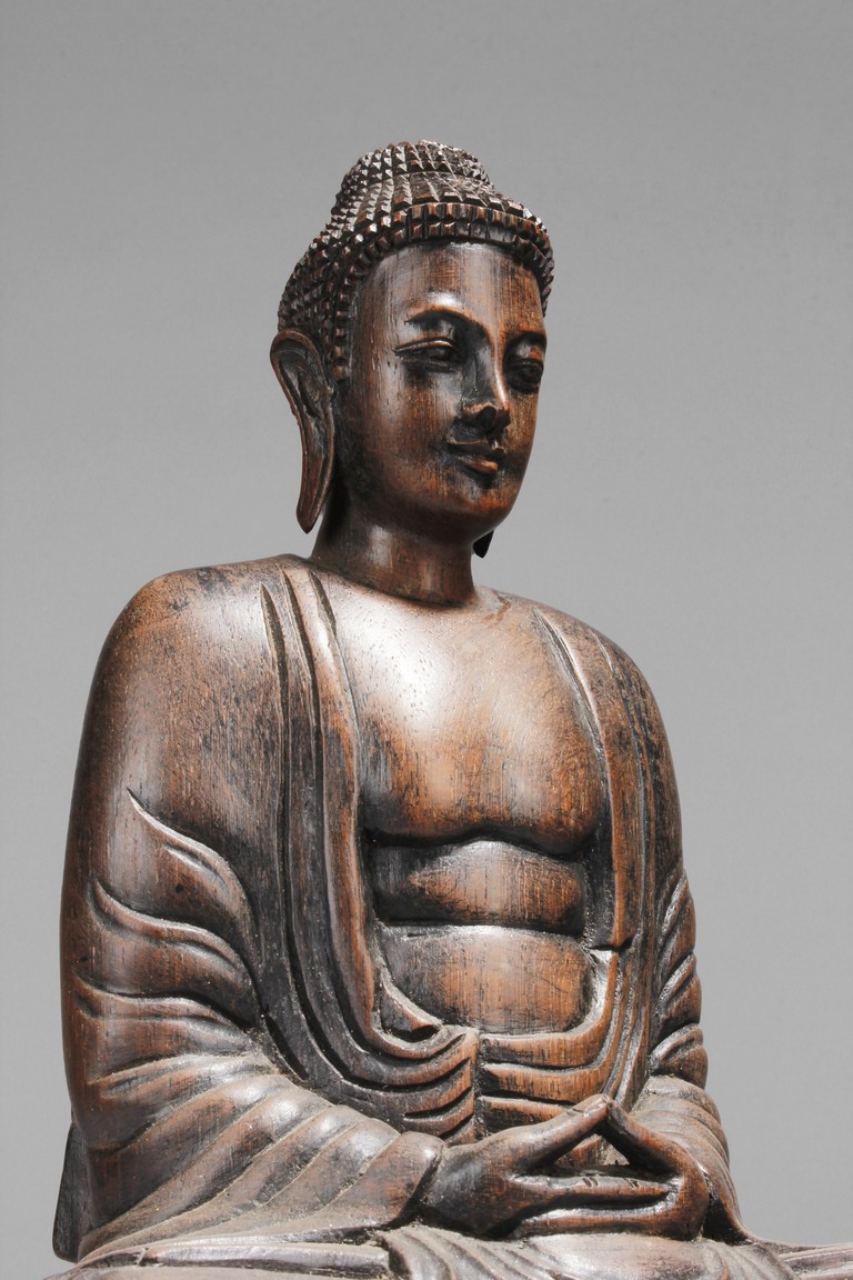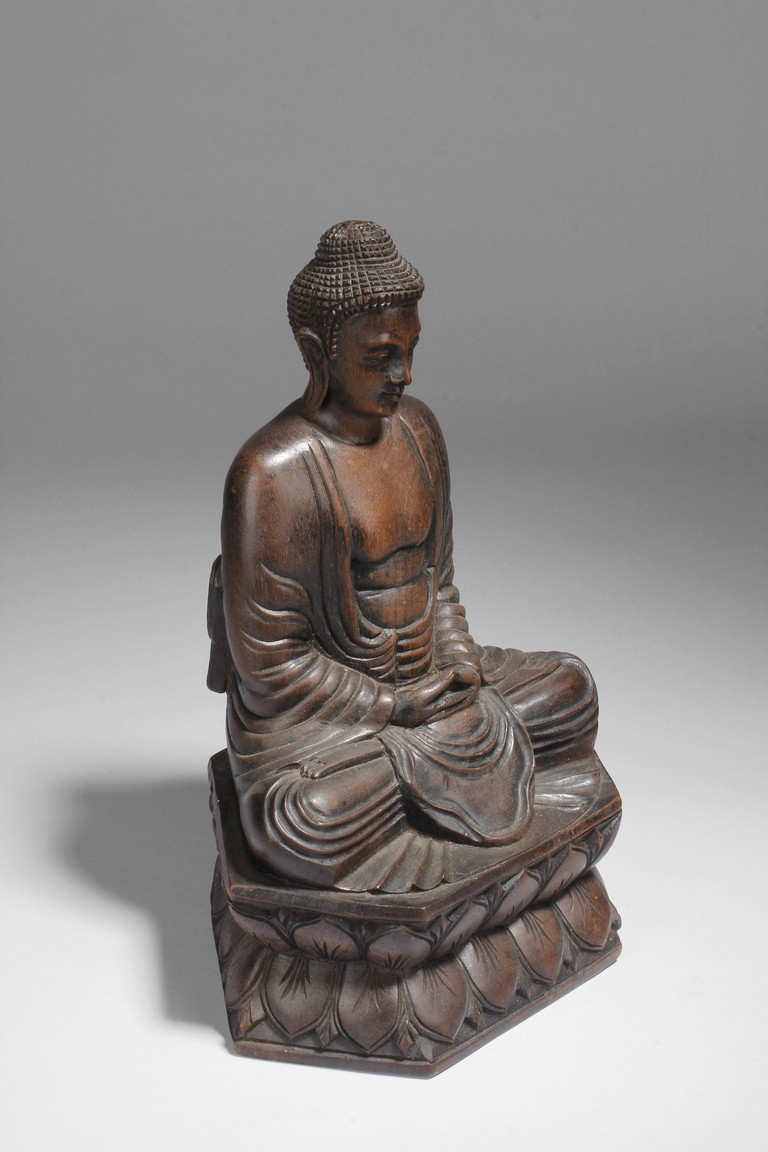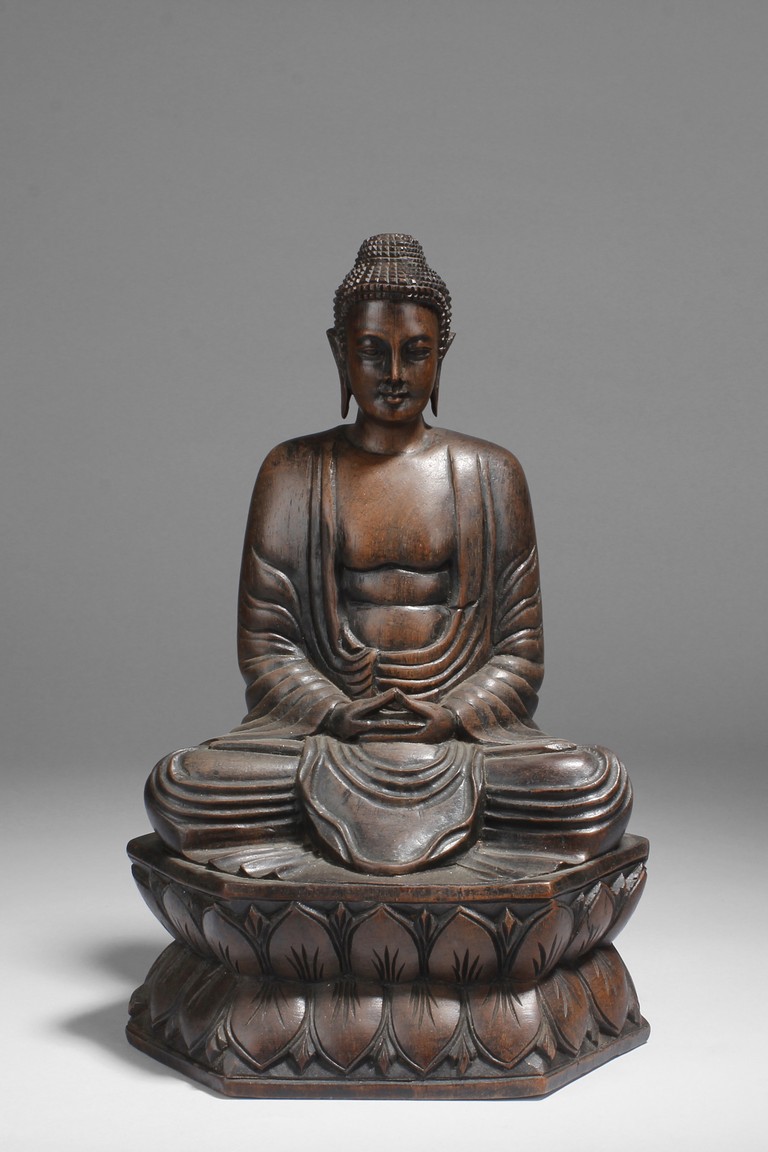 "One Buddha finely carved out of hardwood in the image of Amitabha meditating on a lotus throne