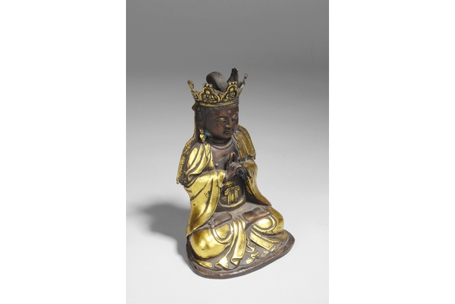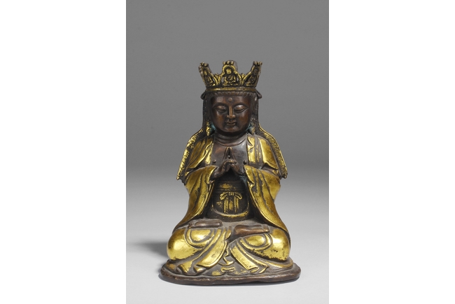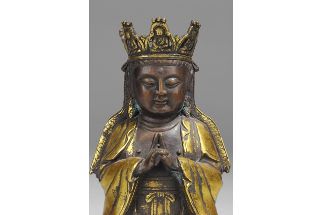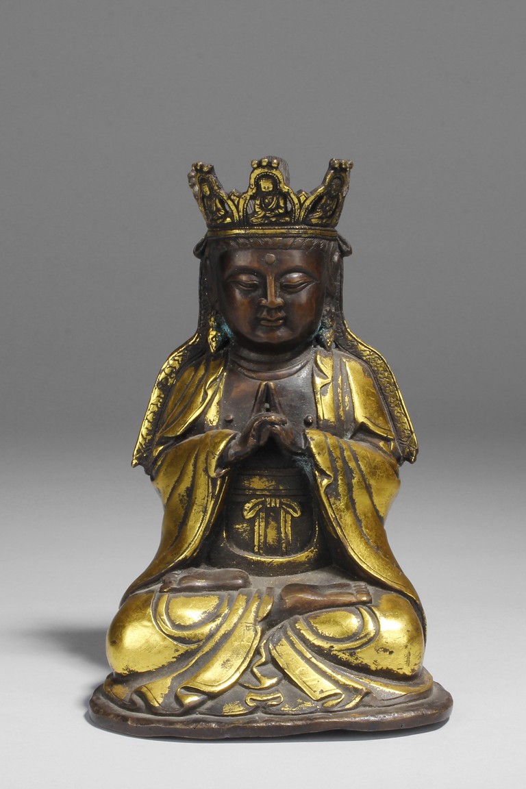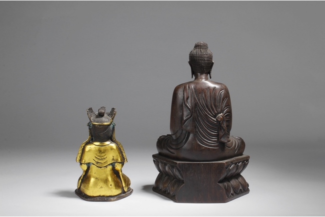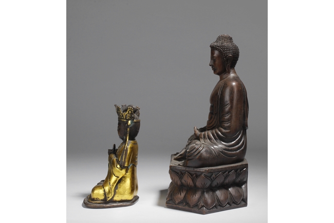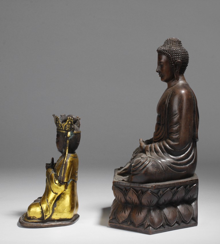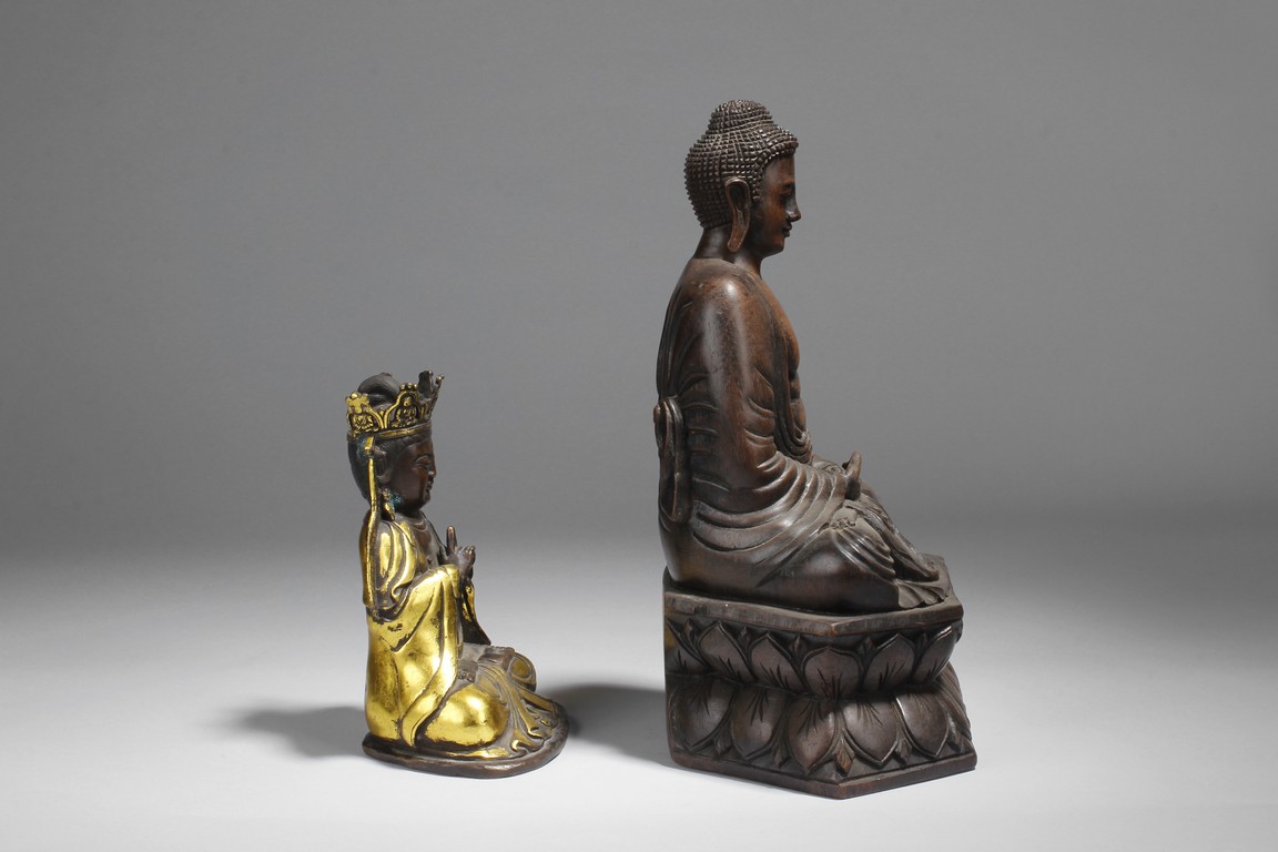 A WOODEN AMITABHA FIGURE & A BRONZE BUDDHA FIGURE 木制阿彌陀佛, 銅制佛像
