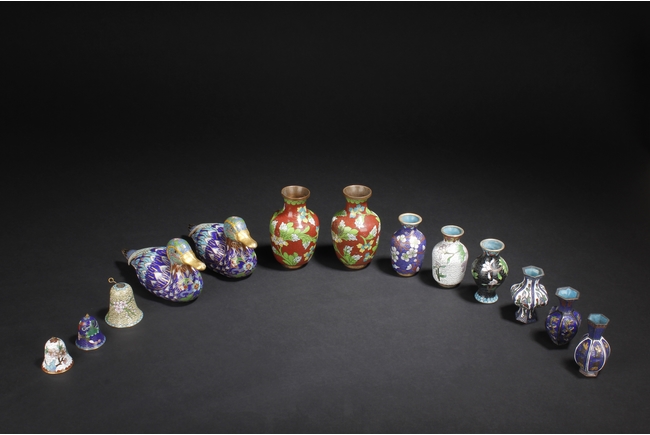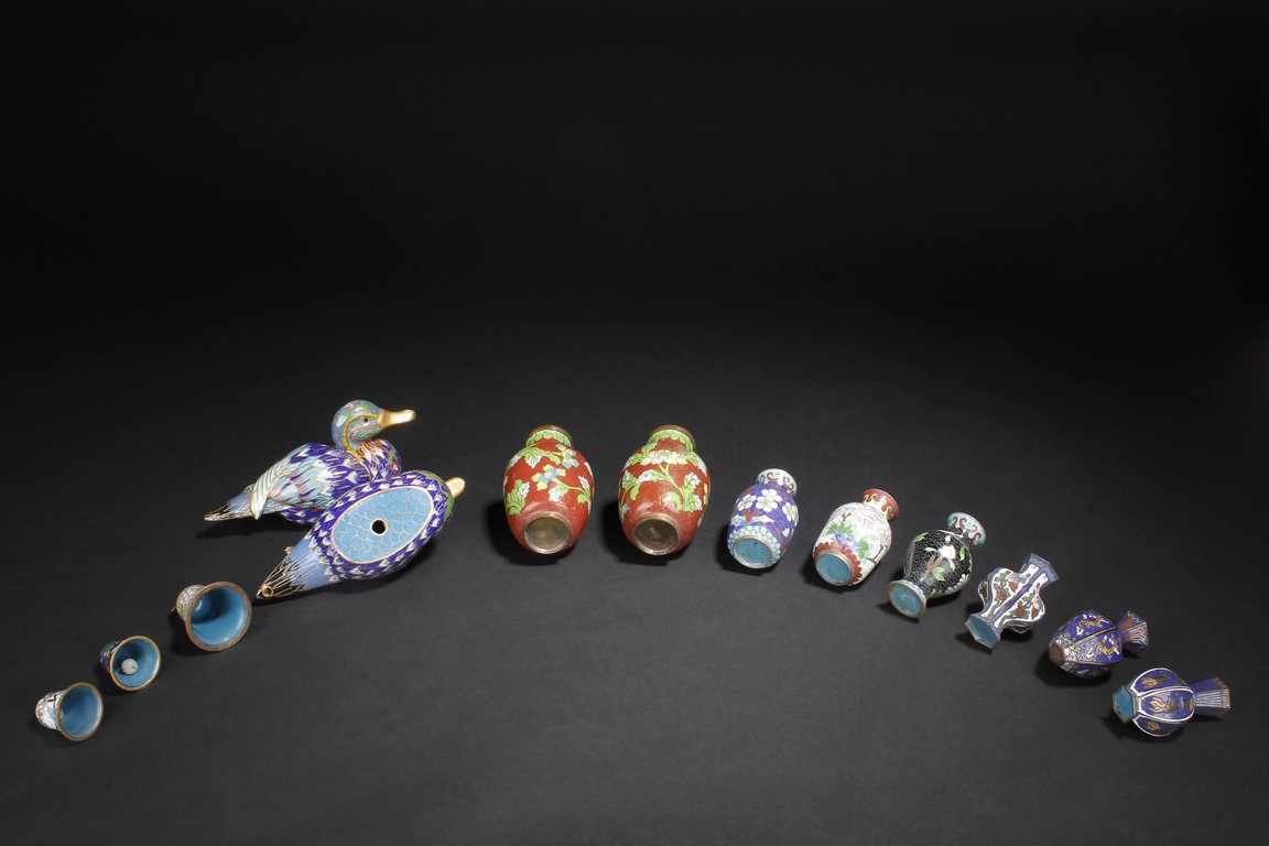 A GROUP OF THIRTEEN CLOISONNE WARES 景泰藍擺件一組十三個