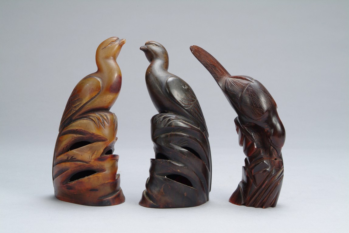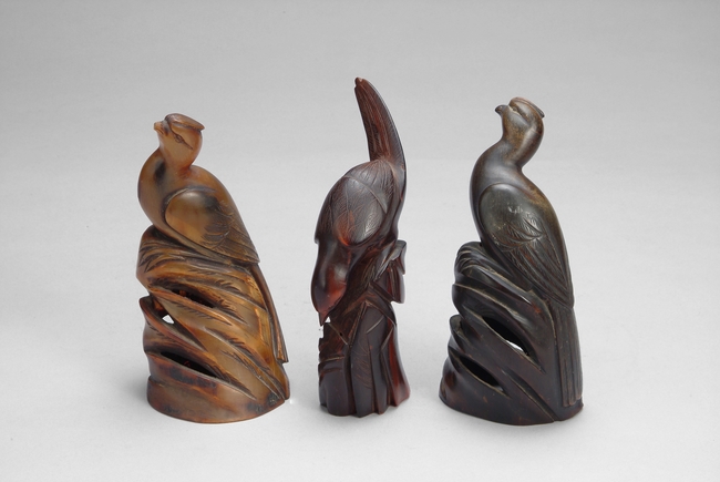 THREE (3) CHINESE HORN CARVED BIRDS 角雕鳥(3個)