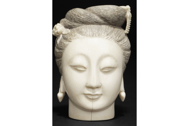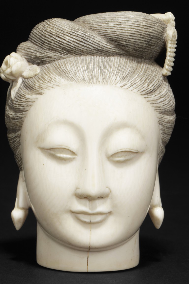 "One carved figure depicts a beauty with serene expressions
