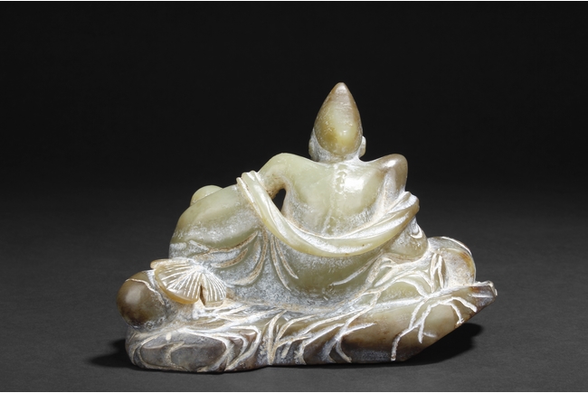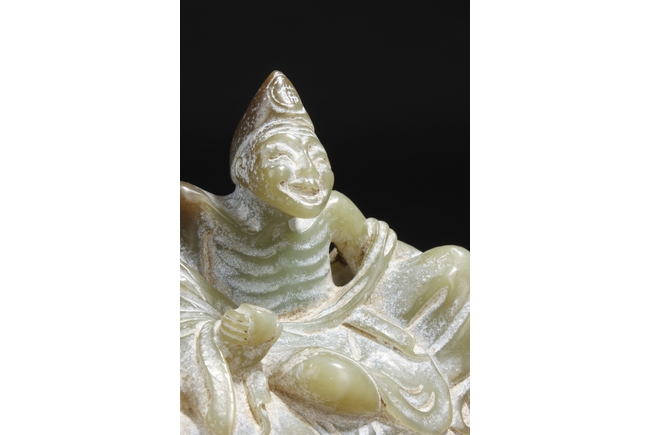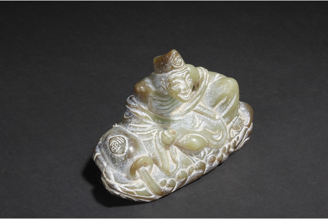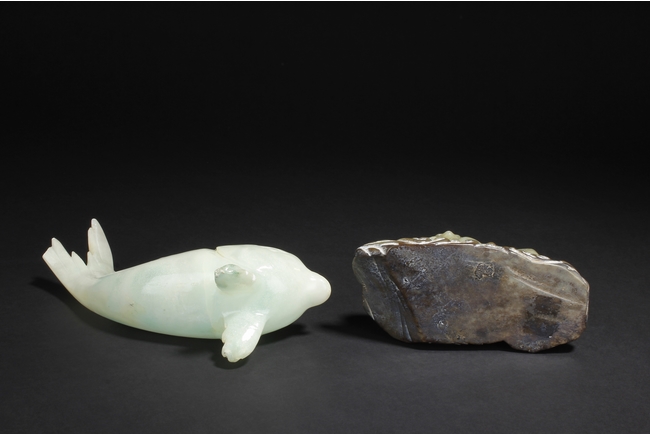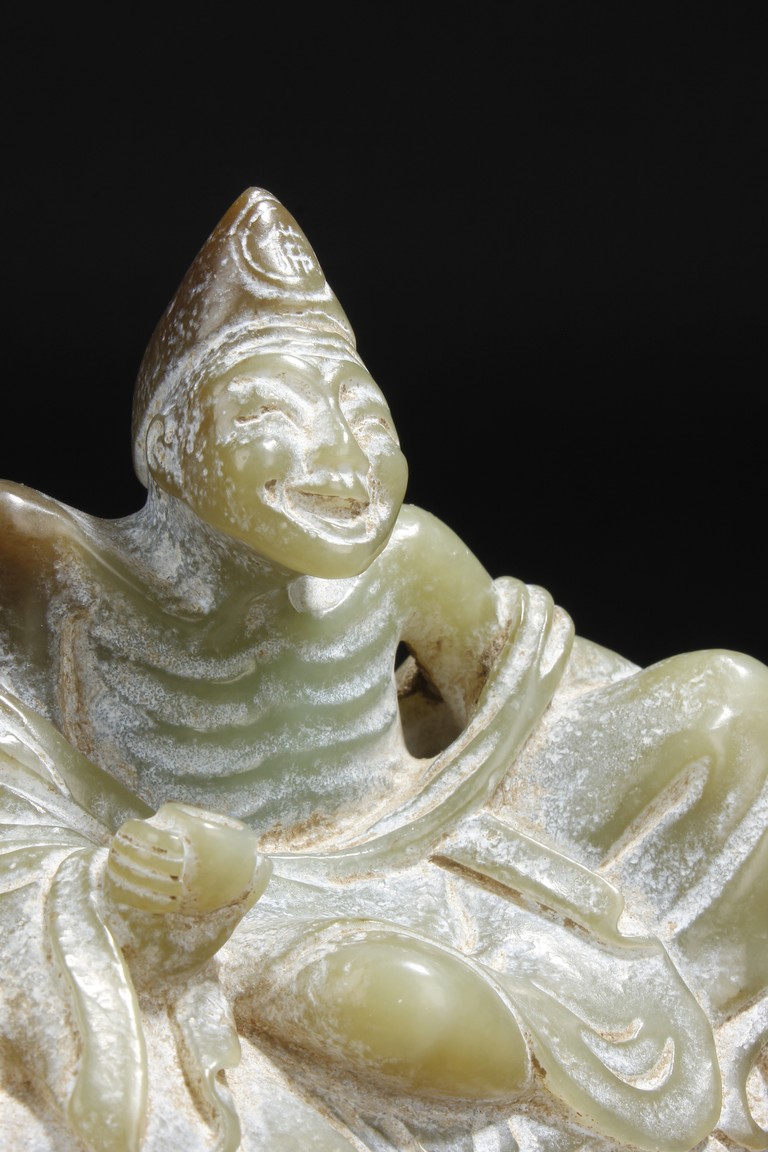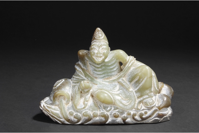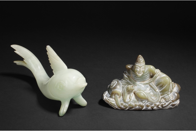 and a "Jigong" figure carved out of a piece of jade-like stone.