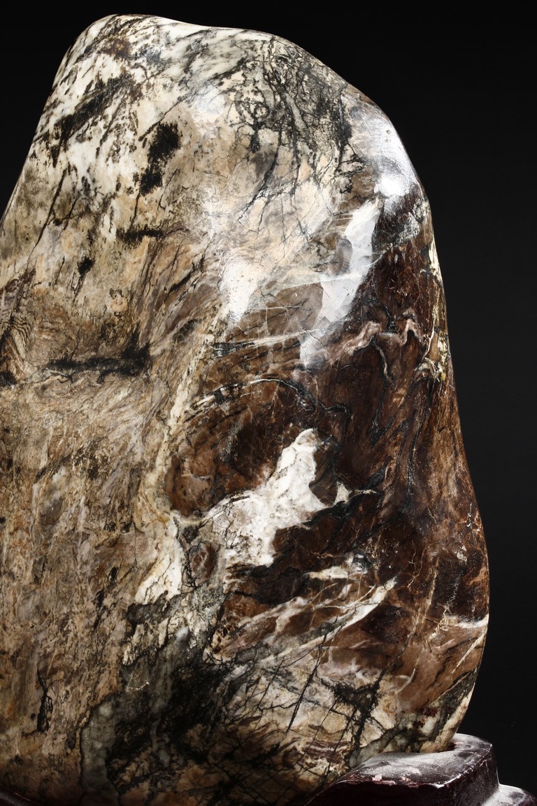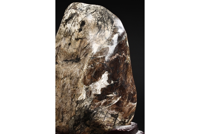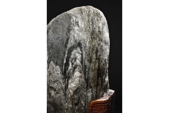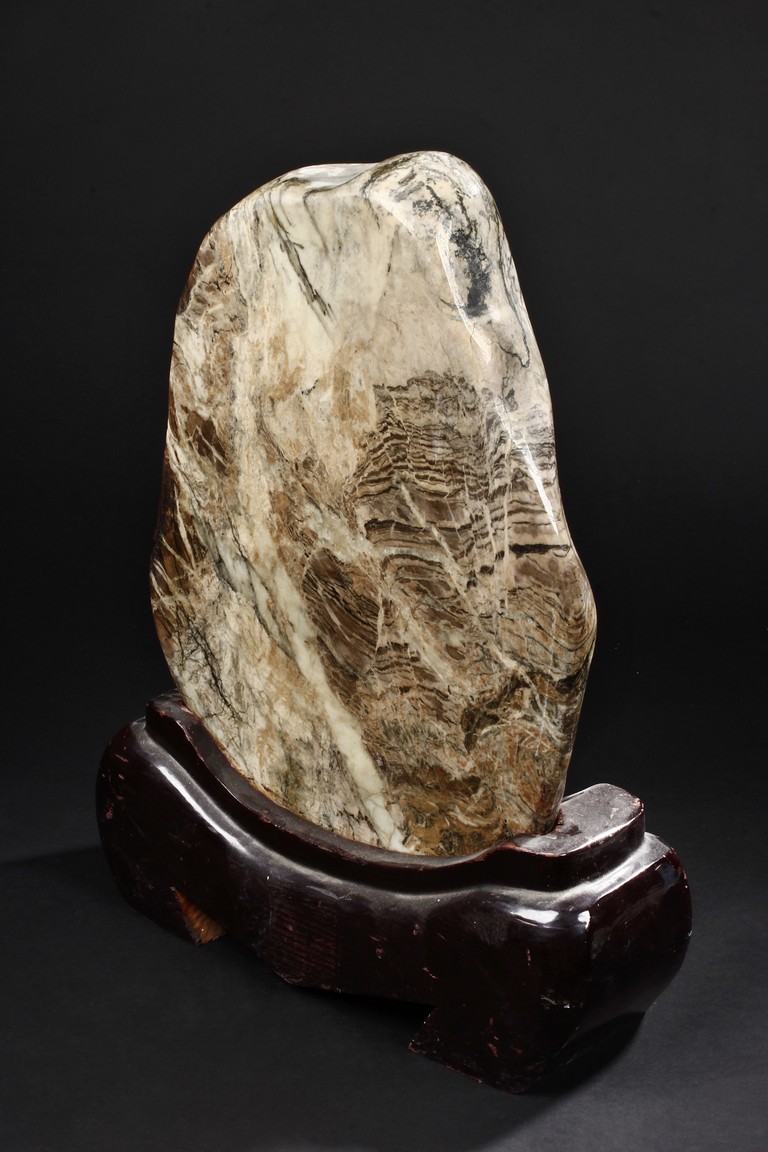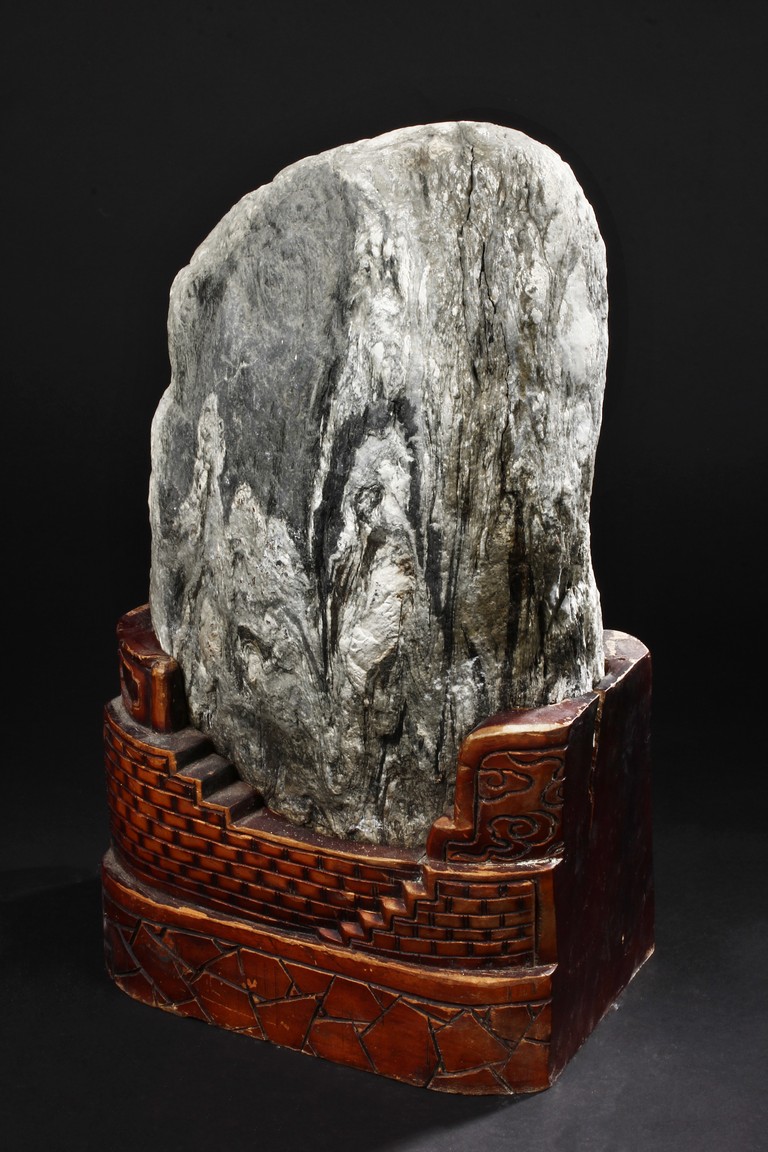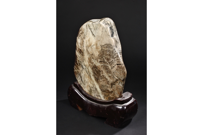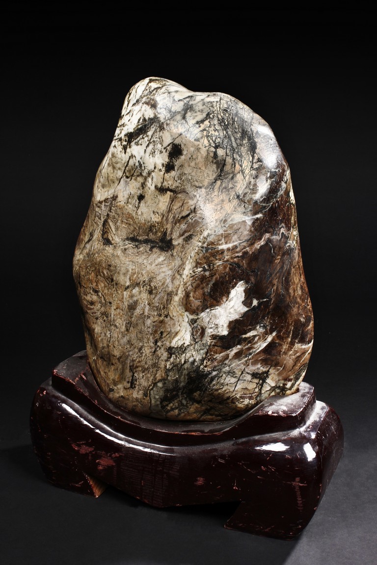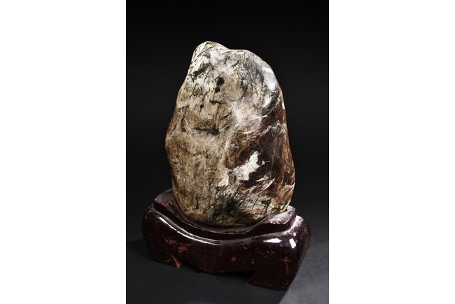TWO NATURAL STONE BOULDERS WITH STANDS 石山子連坐 (兩個)