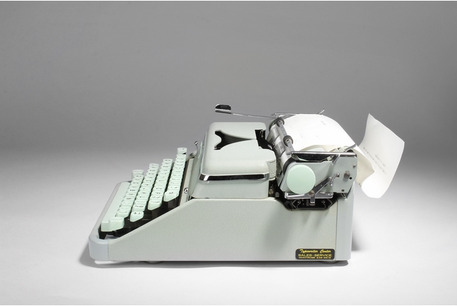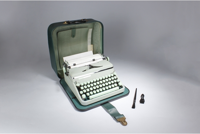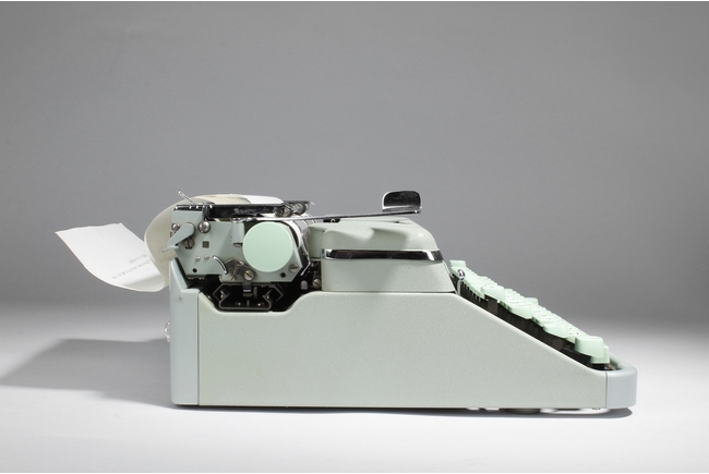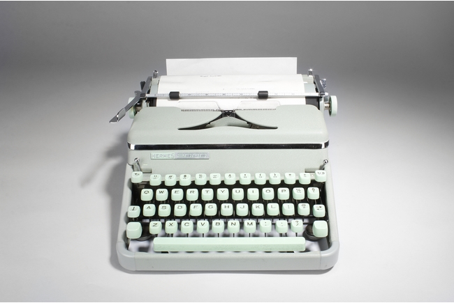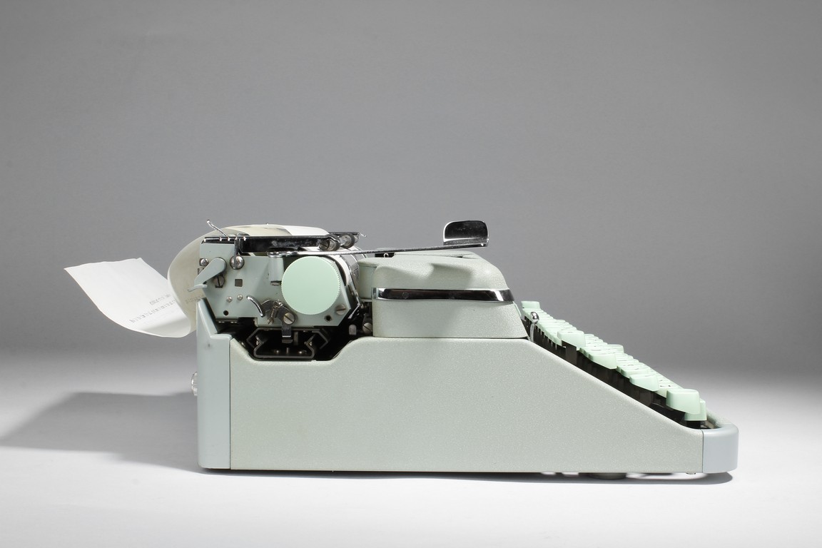 "The vintage type writer was made by Paillard S.A. of Switzerland