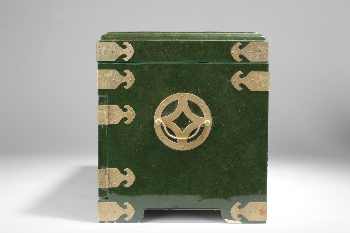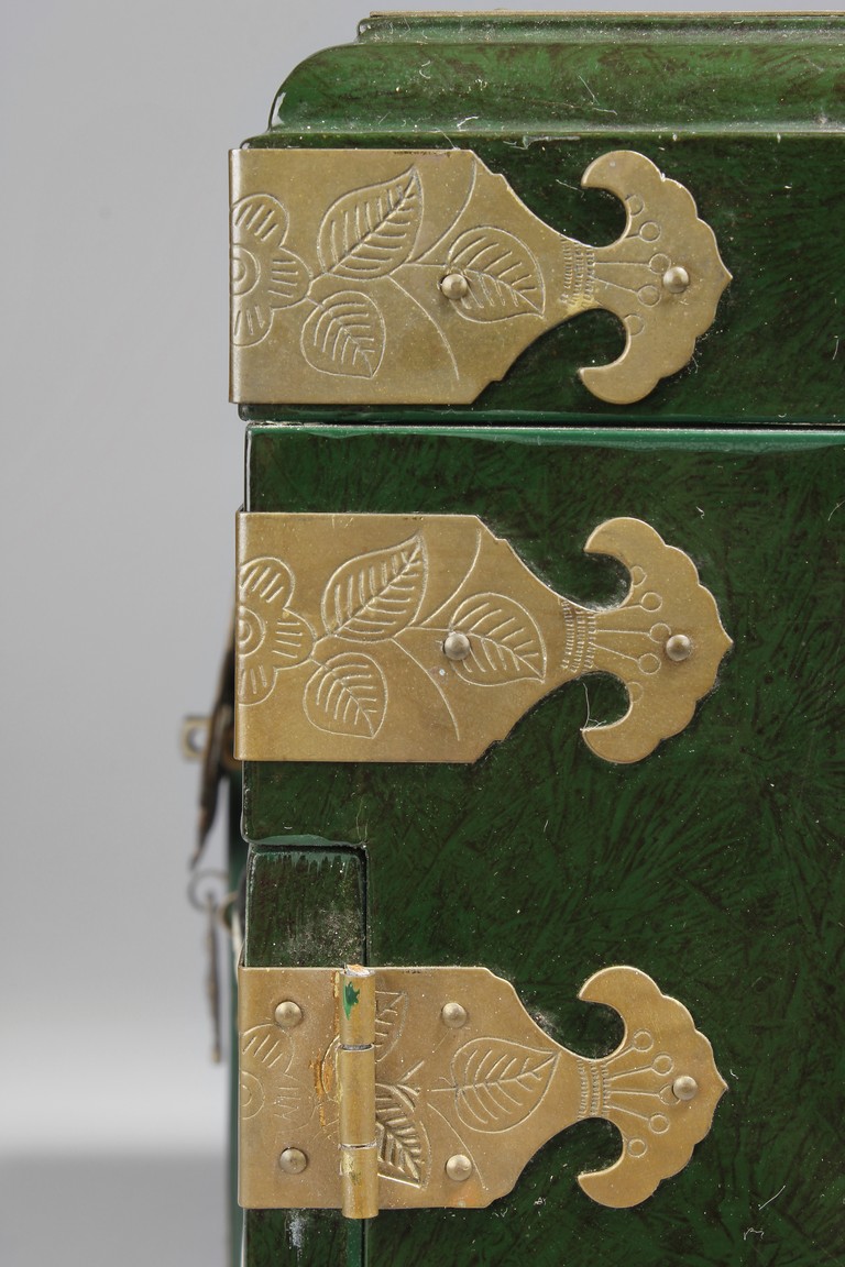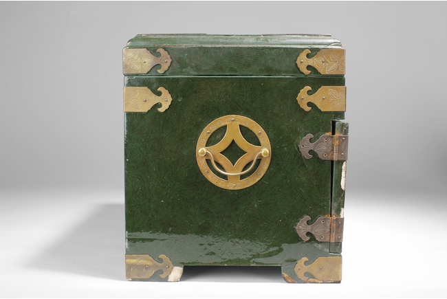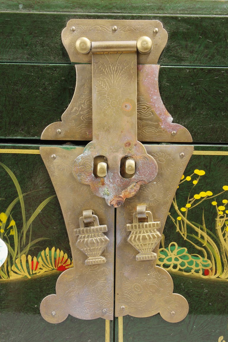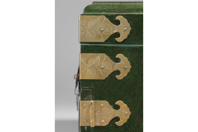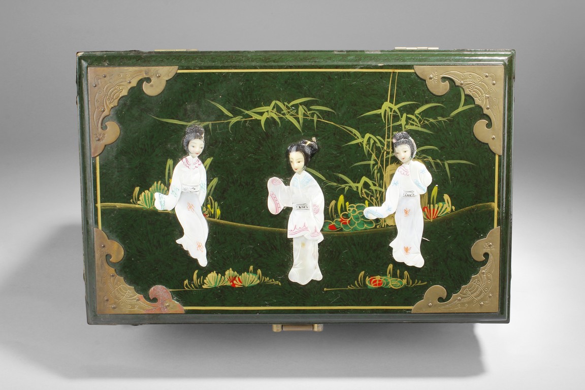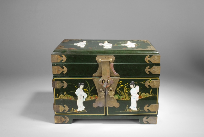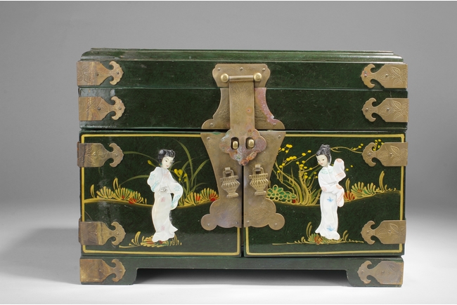 A wooden traditional Chinese cosmetic dressing box of rectangular shape