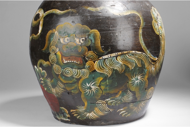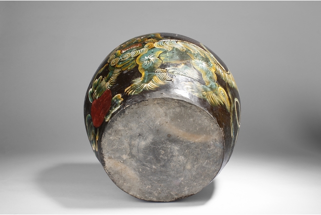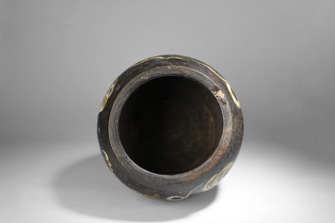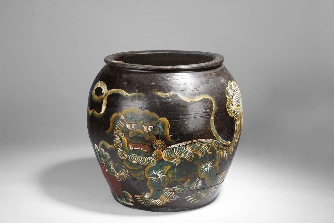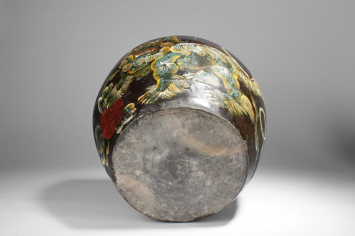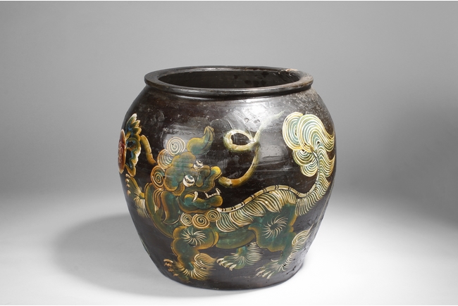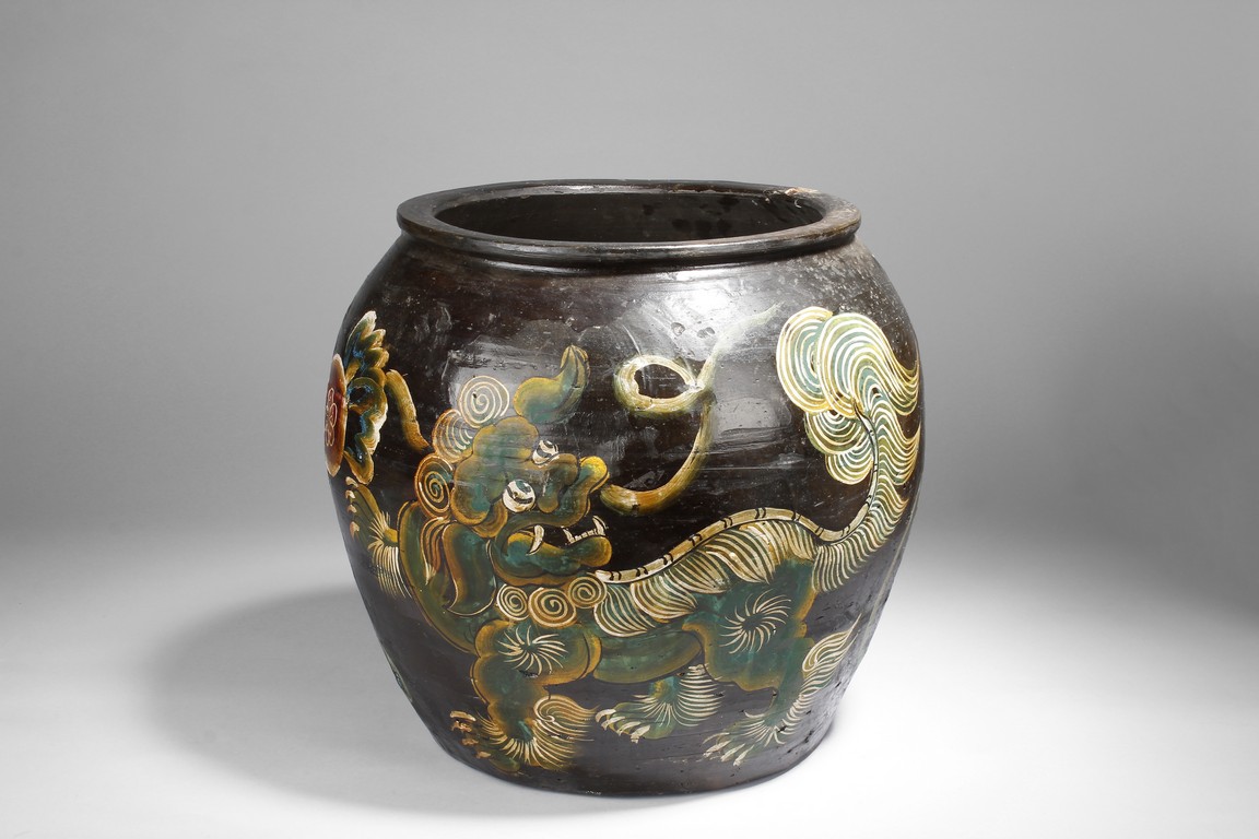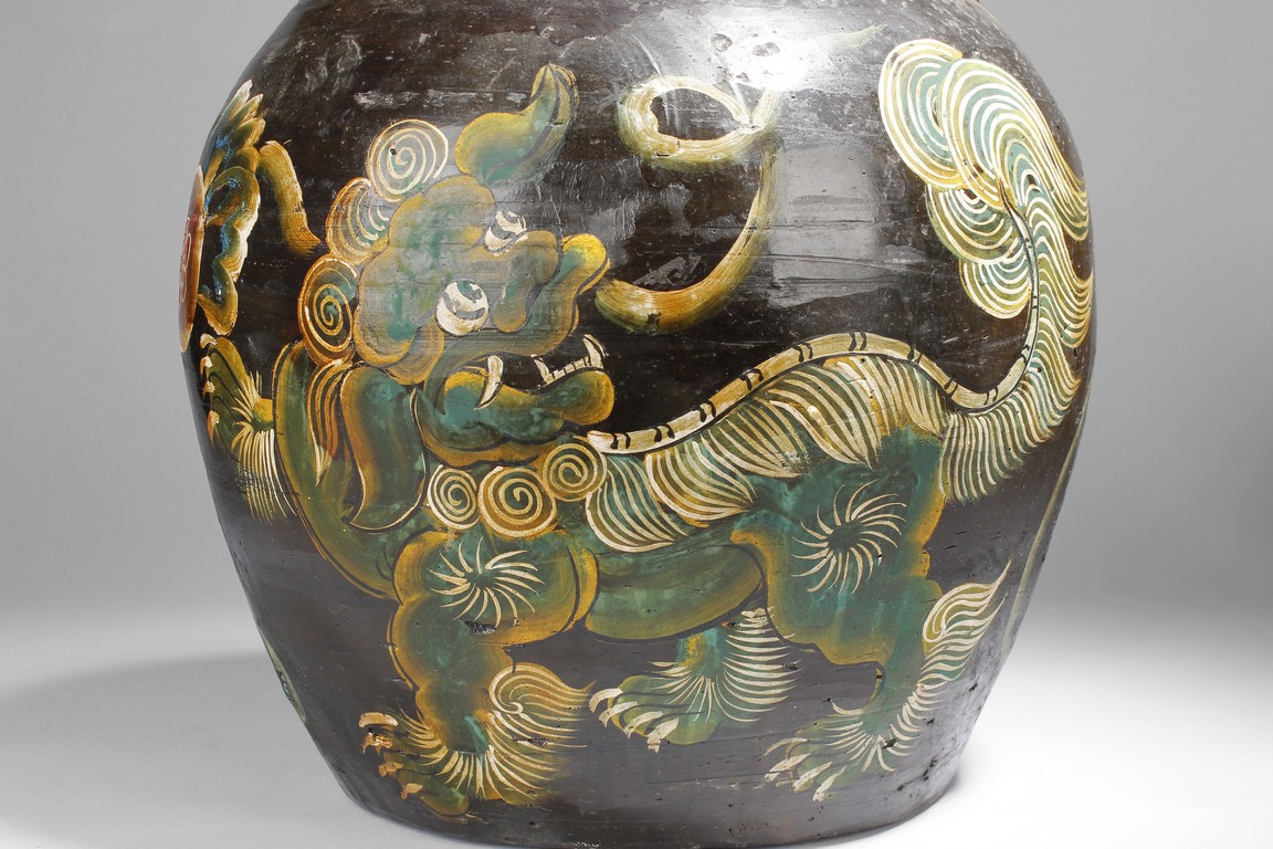 A "Qilin" motif beautifully depicted on the outside wall of this jar over light black glaze