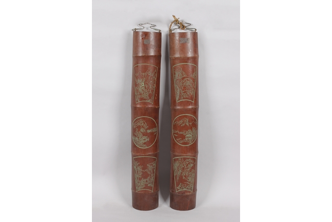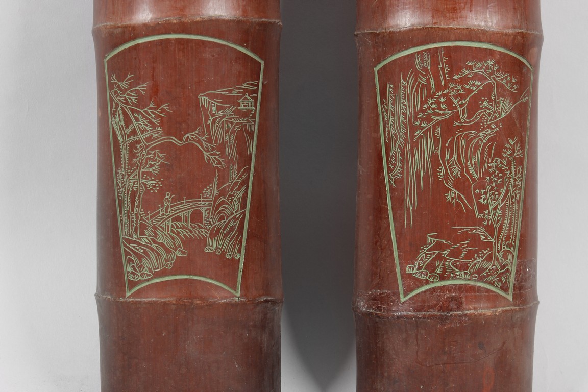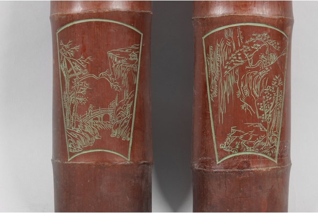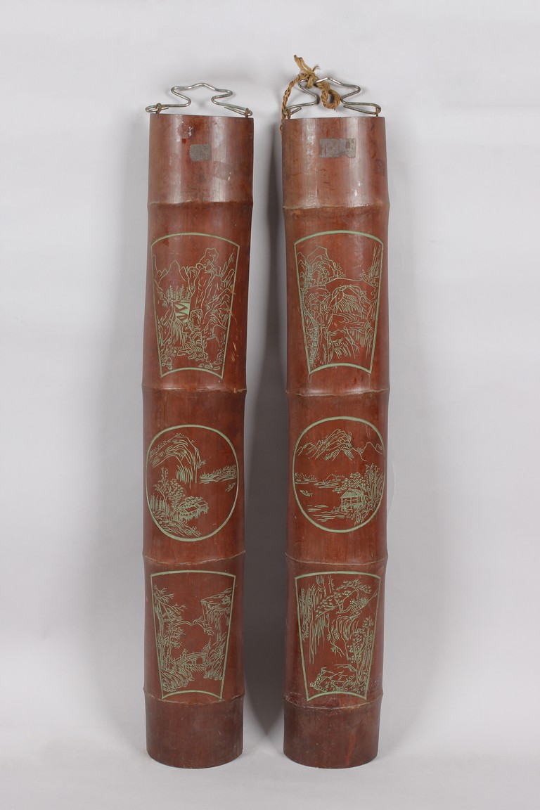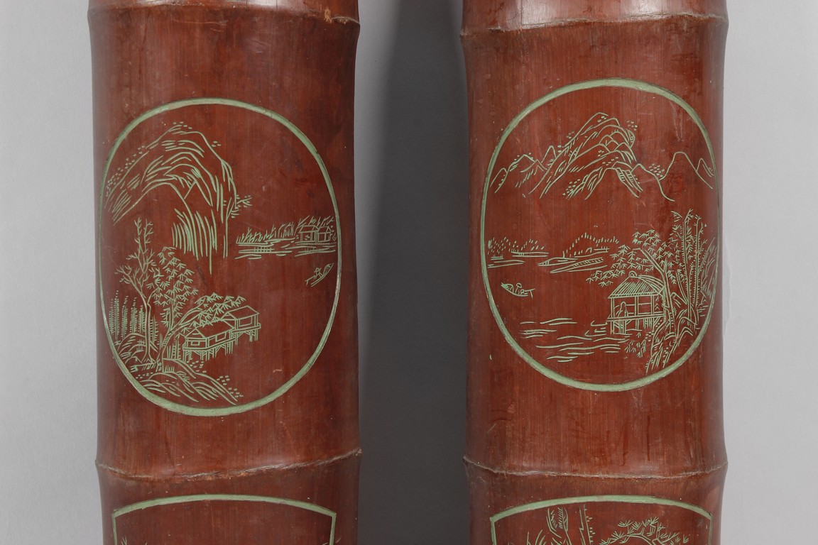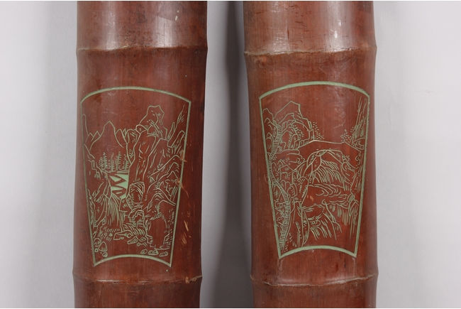 "Beautiful landscape settings finely inscribed on the pair of bamboo pieces