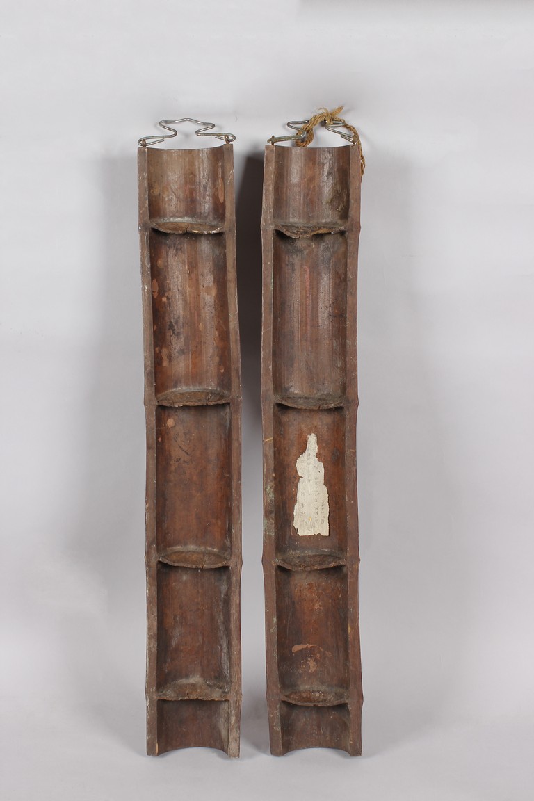 A PAIR OF CARVED BAMBOO HANGINGS 竹雕掛飾一對