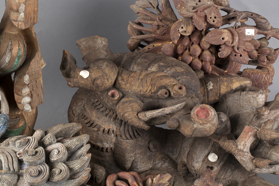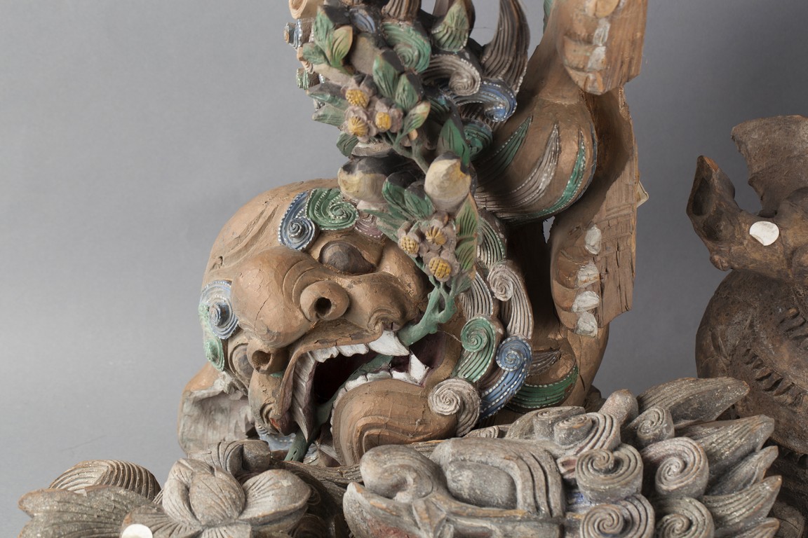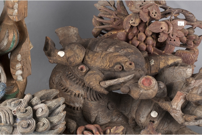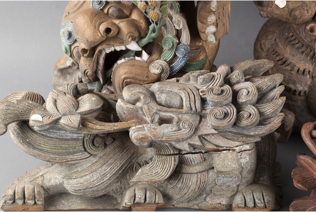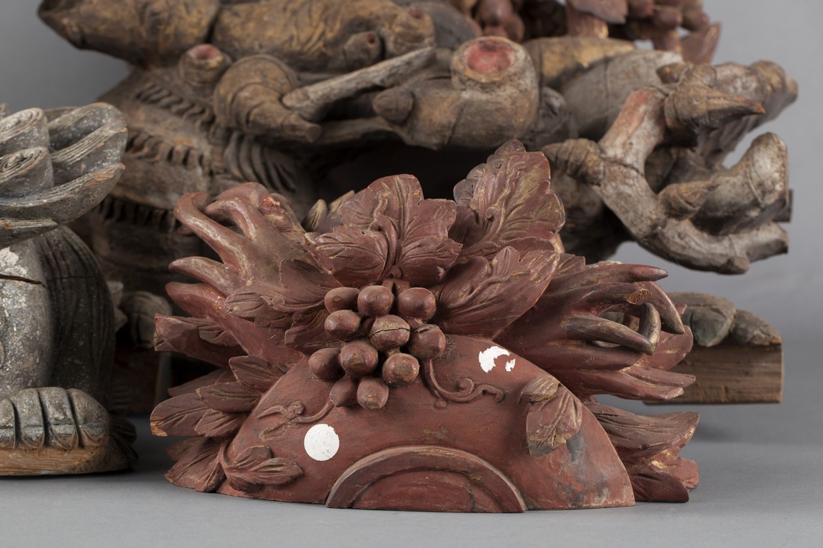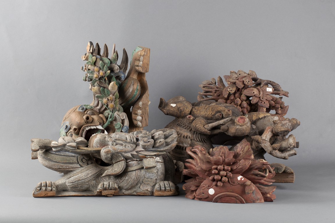 "The group of five wood carvings depicts various monsters and folklore figures