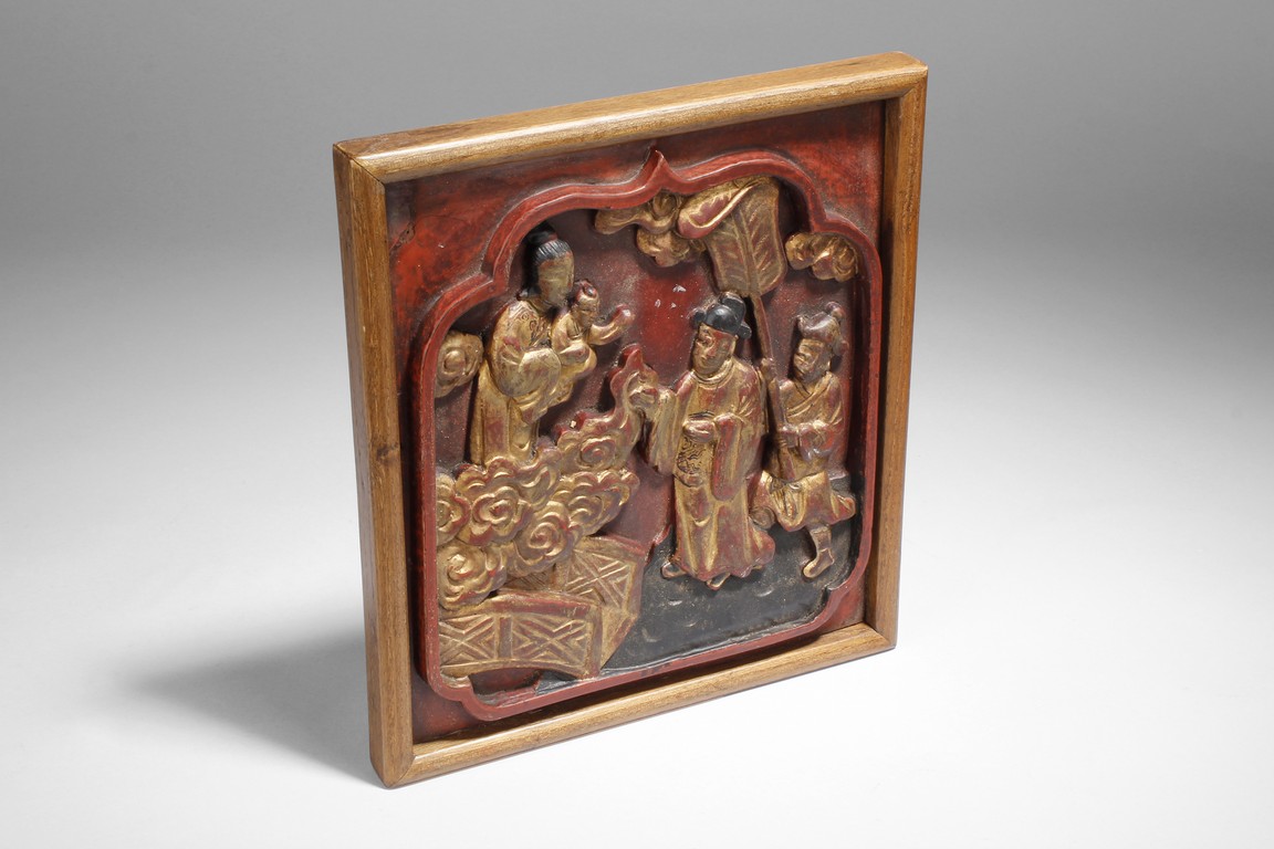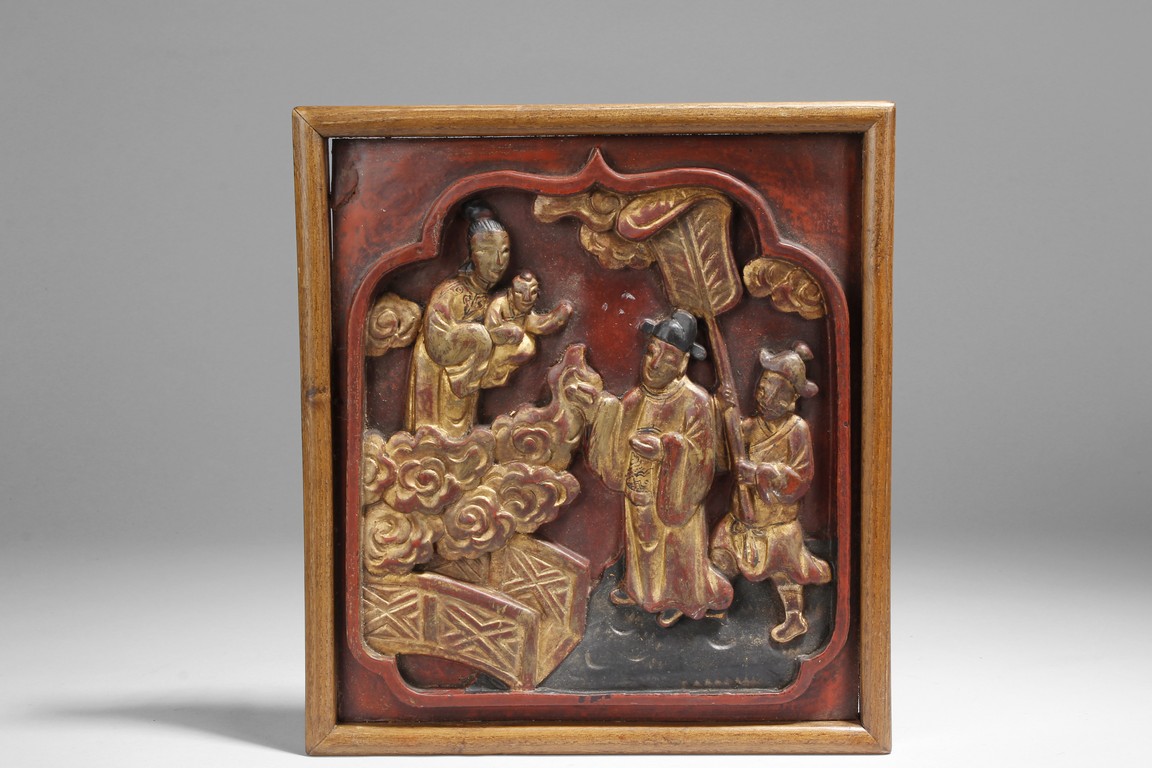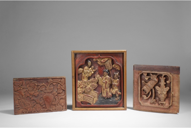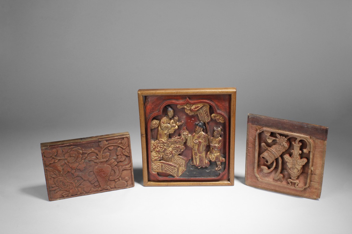 A GROUP OF THREE CARVED WOOD PANELS 木雕圖三件