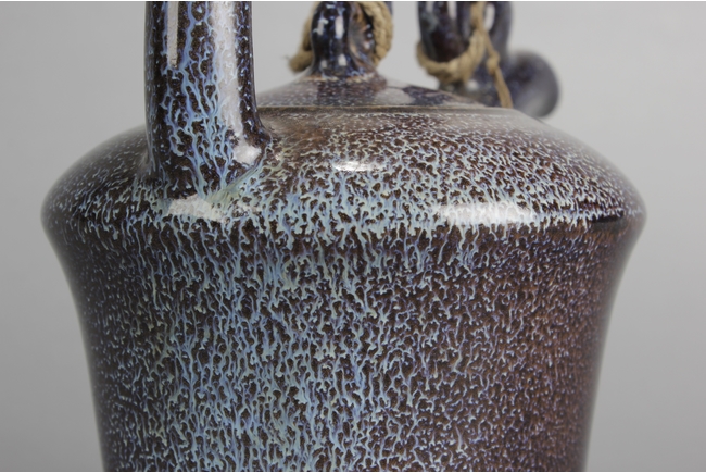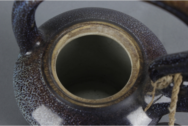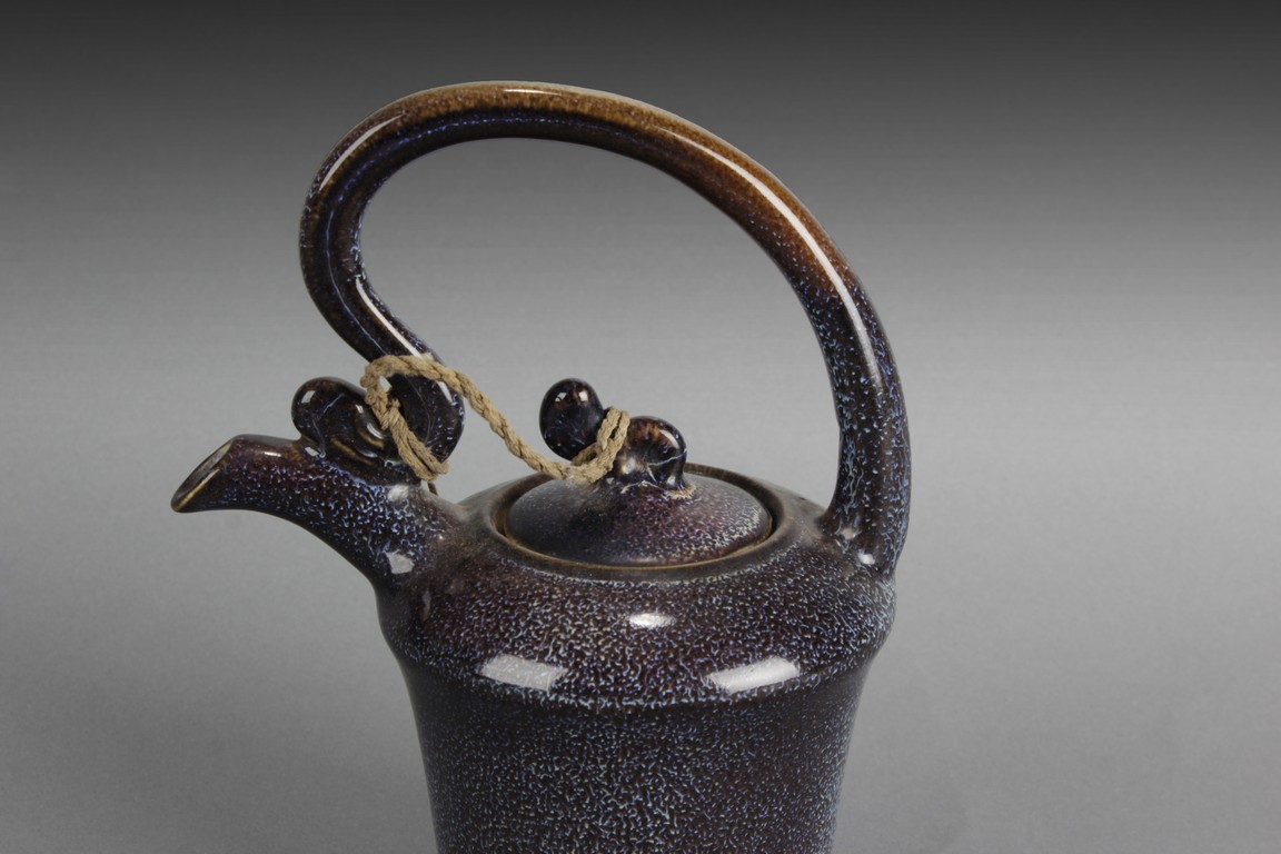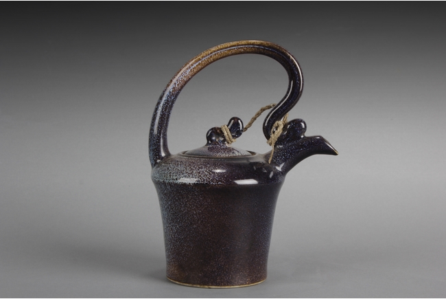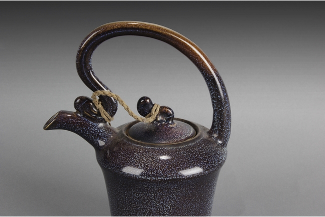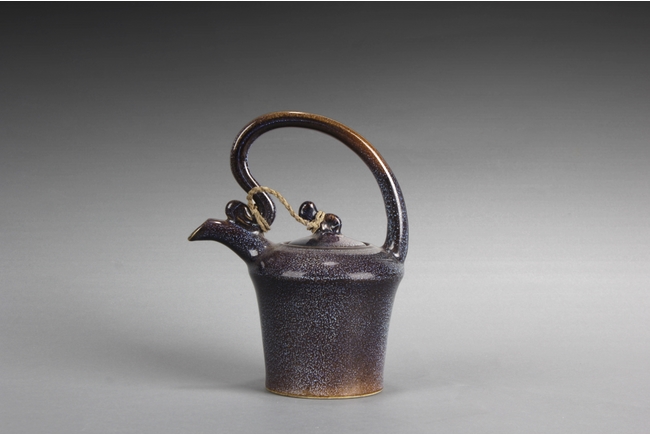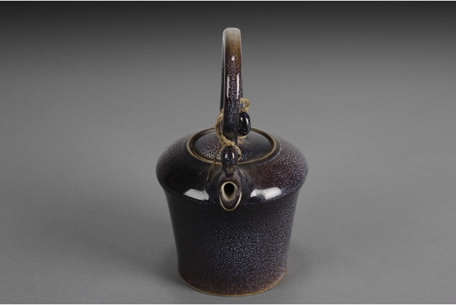 A fine "Junyao" ceramic glazed teapot with arch handle on top connecting the body and the spout