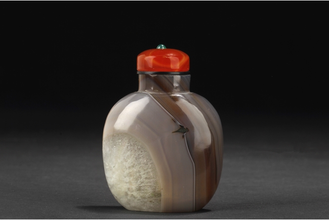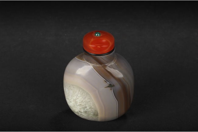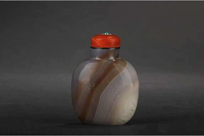 A TRI-COLOR AGATE SNUFF BOTTLE WITH GLASS STOPPER 瑪瑙鼻煙壺