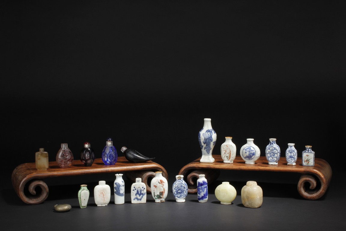 A GROUP OF TWENTY-ONE SNUFF BOTTLES 鼻煙壺, 瓷器