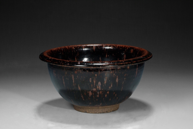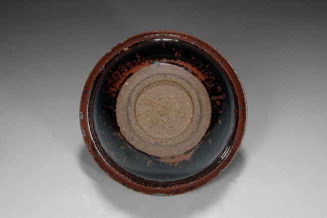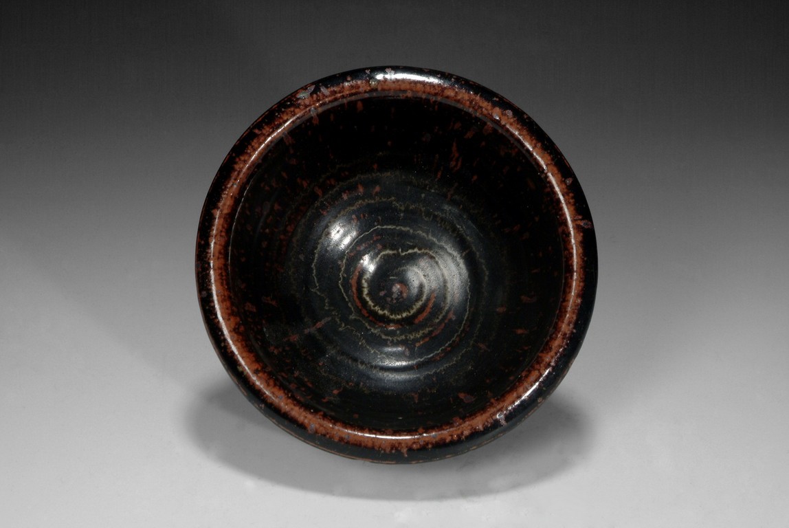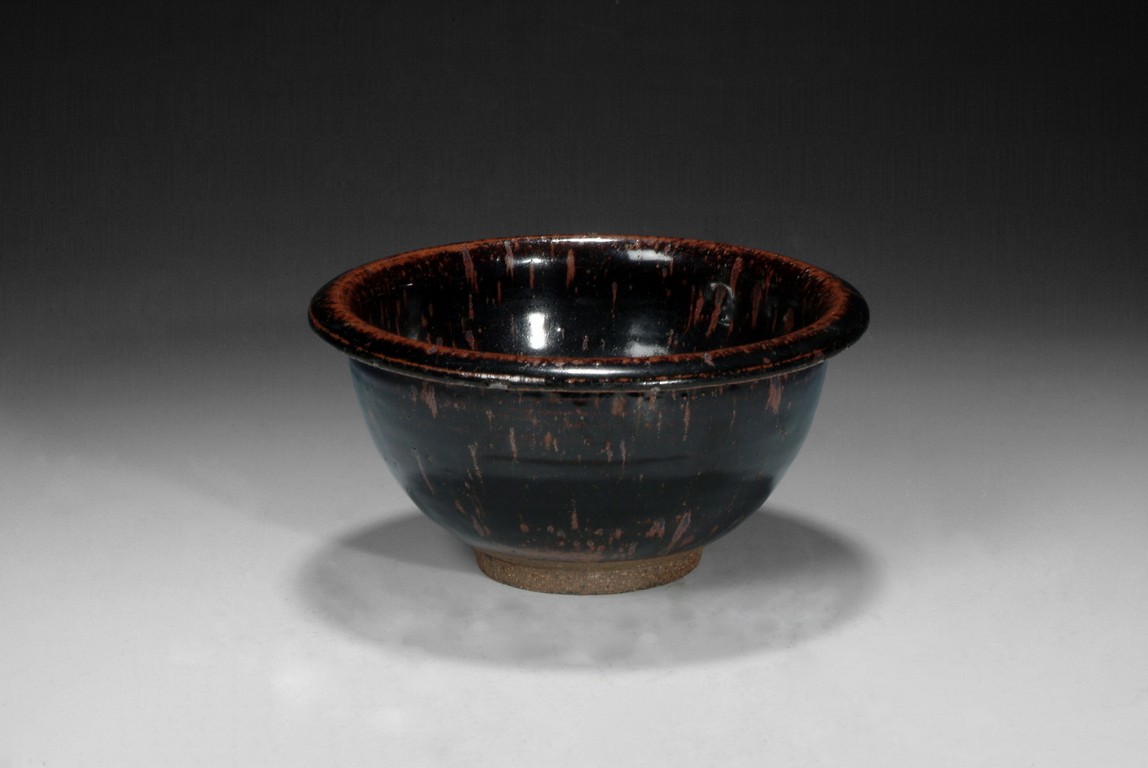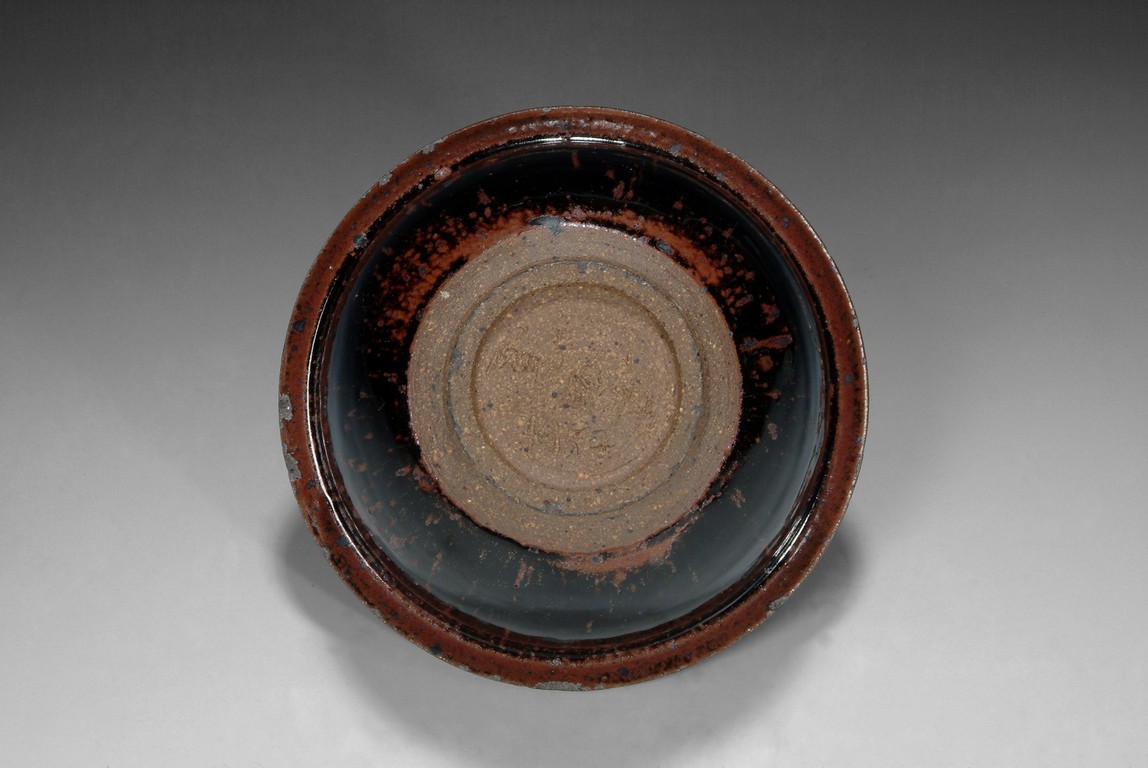 the sides of the bowl rise to rim with russet fur markings on body. The foot is unglazed.