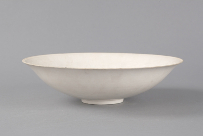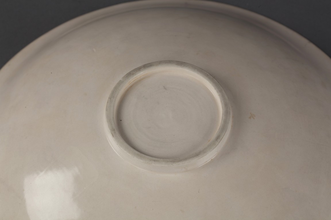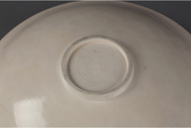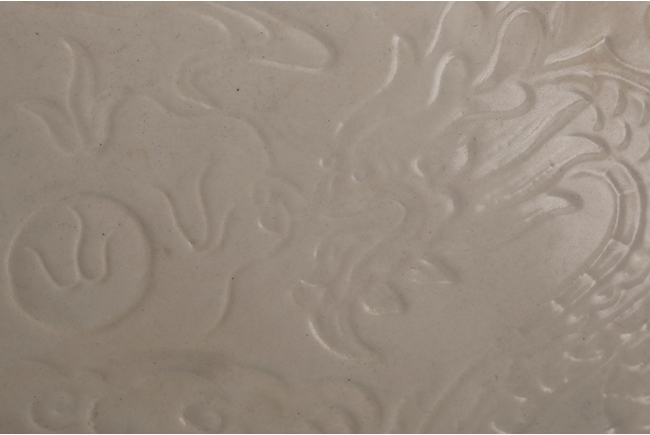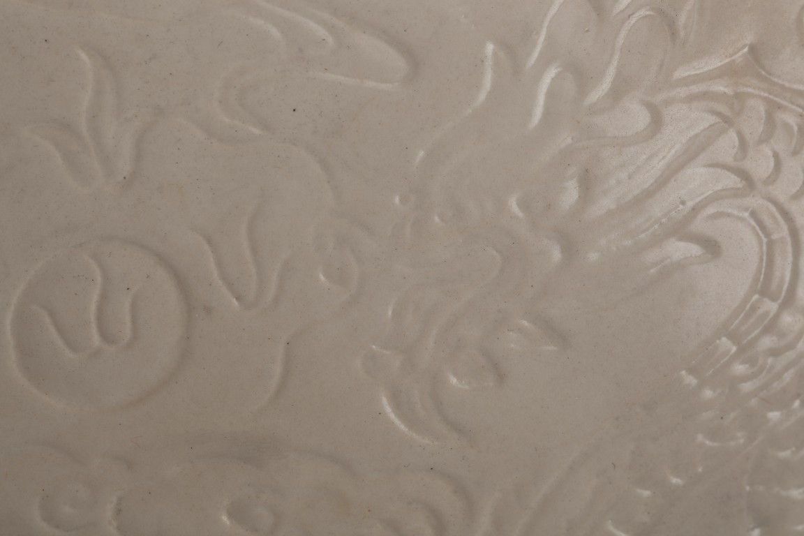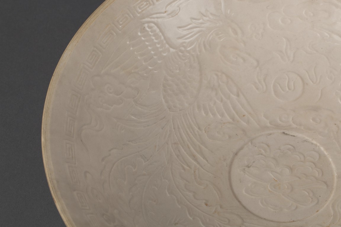 This cream-white glazed porcelain bowl is decorated with lightly molded dragon and phoenix