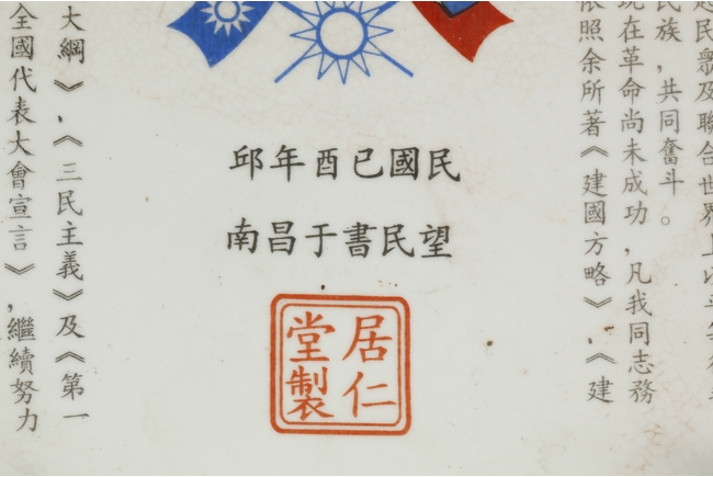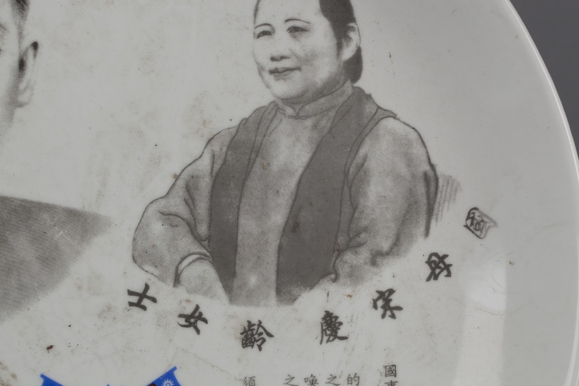 A pair of porcelain dishes honoring SUN YAT-SEN and his wife. One dish is of white ground