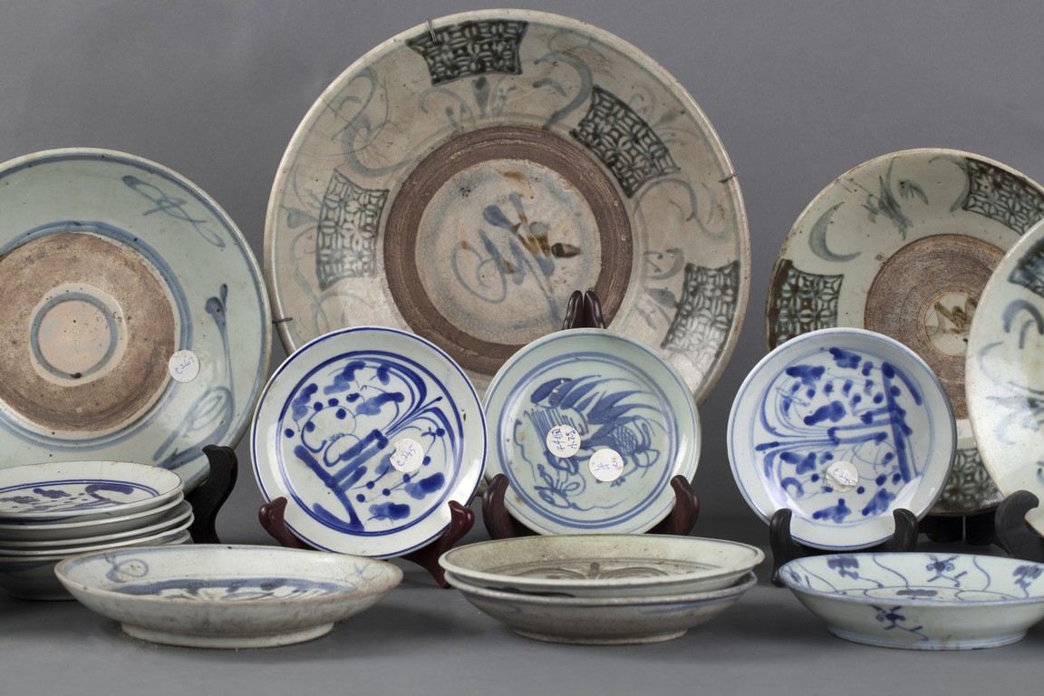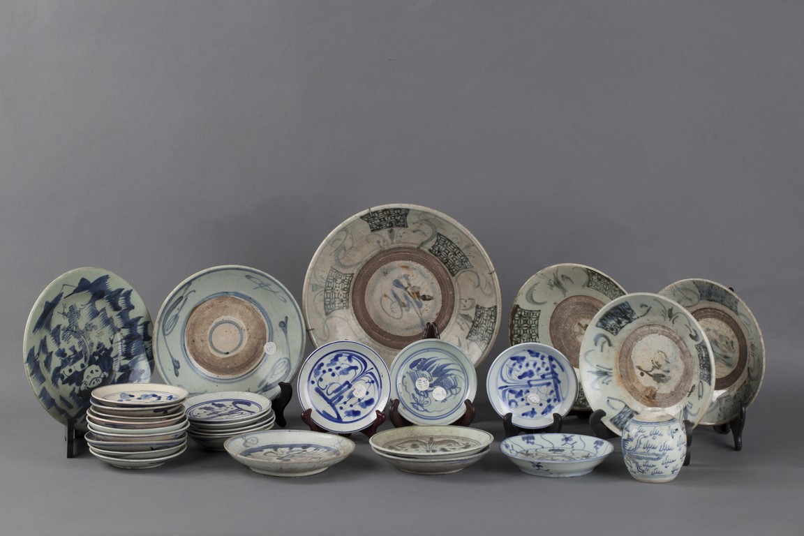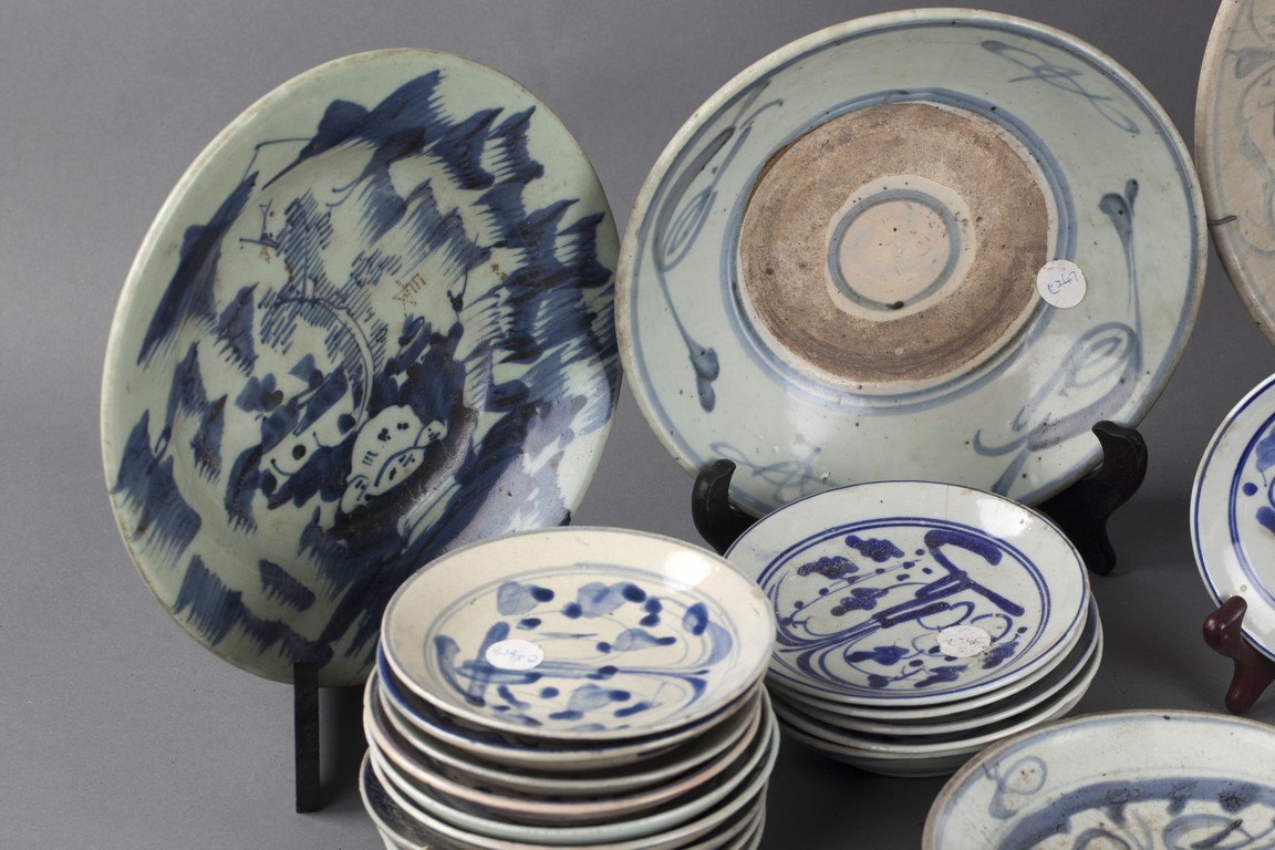 A SET OF TWENTY SEVEN BLUE AND WHITE WARES 青花水彩瓶碟 共二十七件