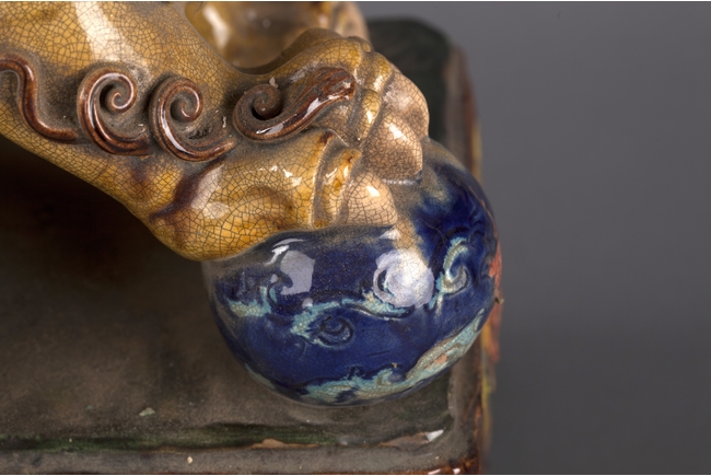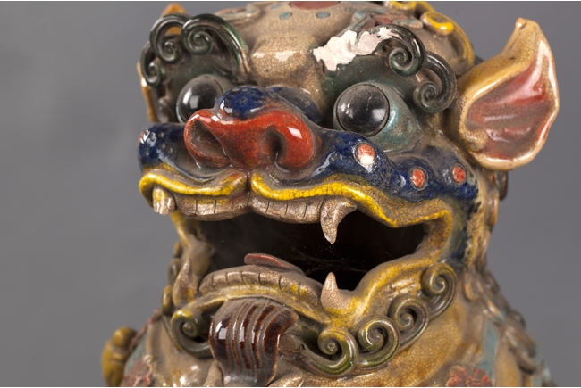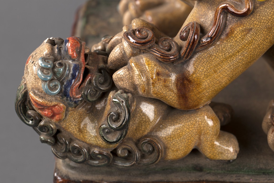 A PAIR OF GLAZED CERAMIC LION FIGURES 陶瓷獅子 一對