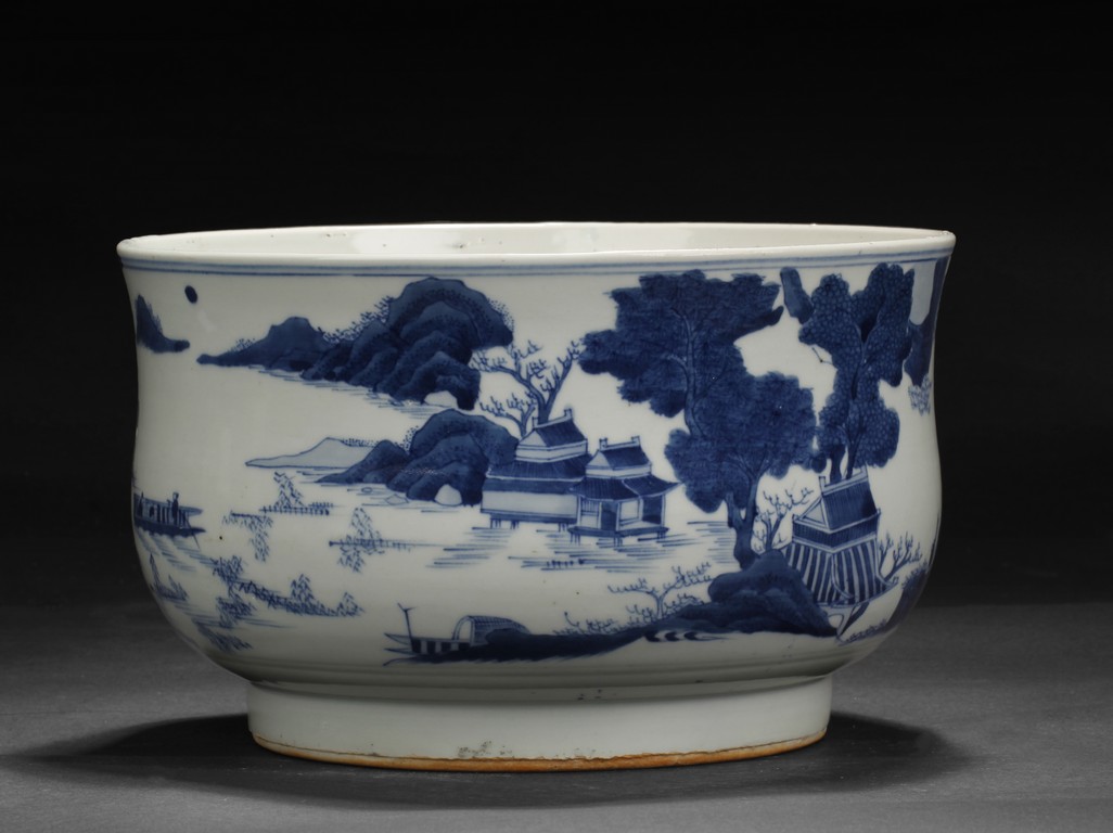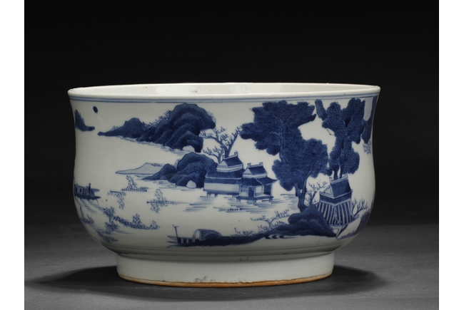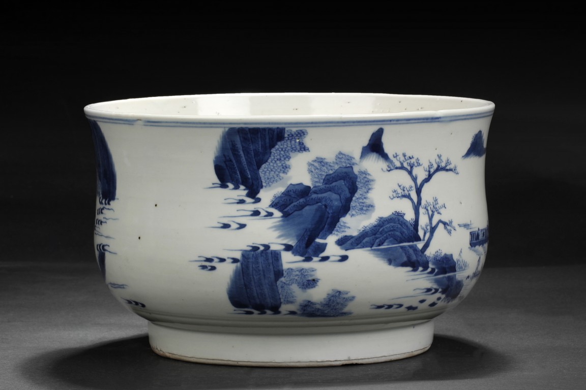 A BLUE AND WHITE 'LANDSCAPE SCENERY' CENSER 清 青花人物瓷香爐