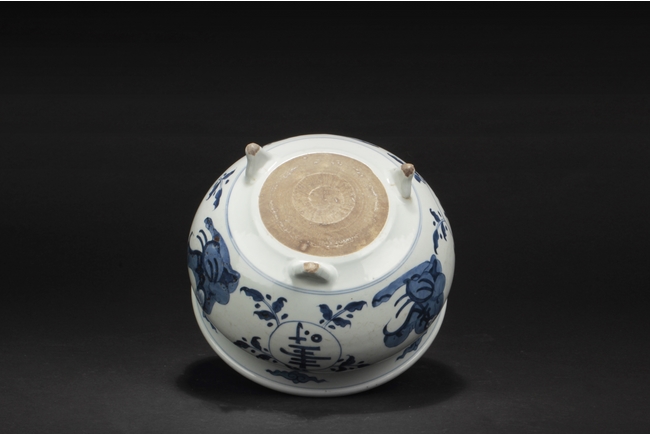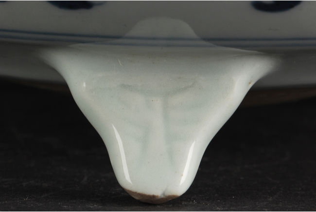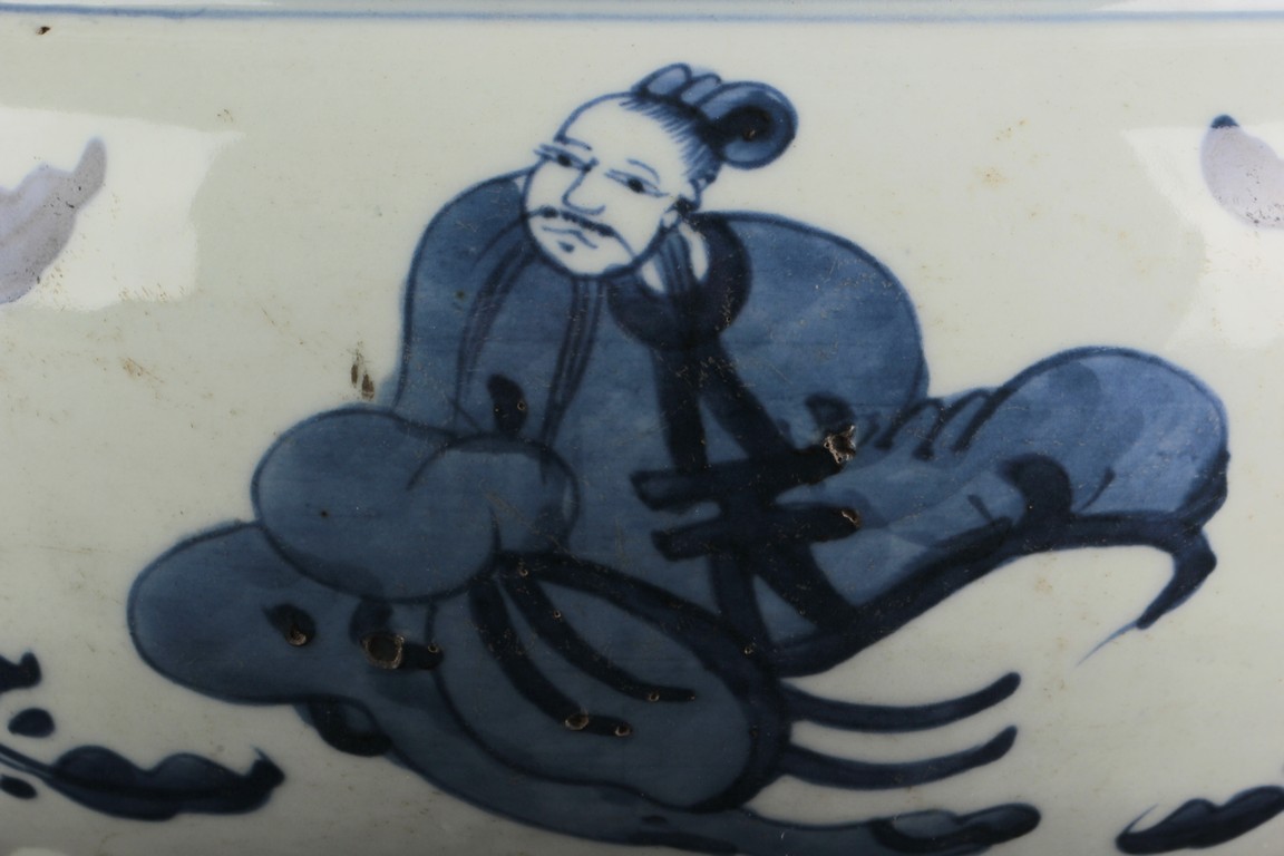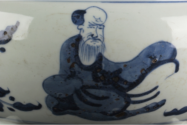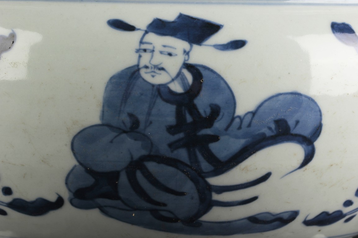 A BLUE AND WHITE TRIPOD CENSER 'FU LU SHOU' 清 青花三腳福祿壽人物瓷香爐