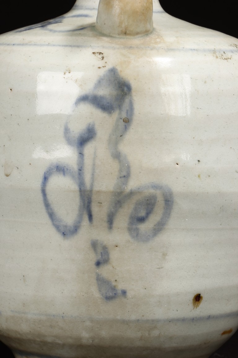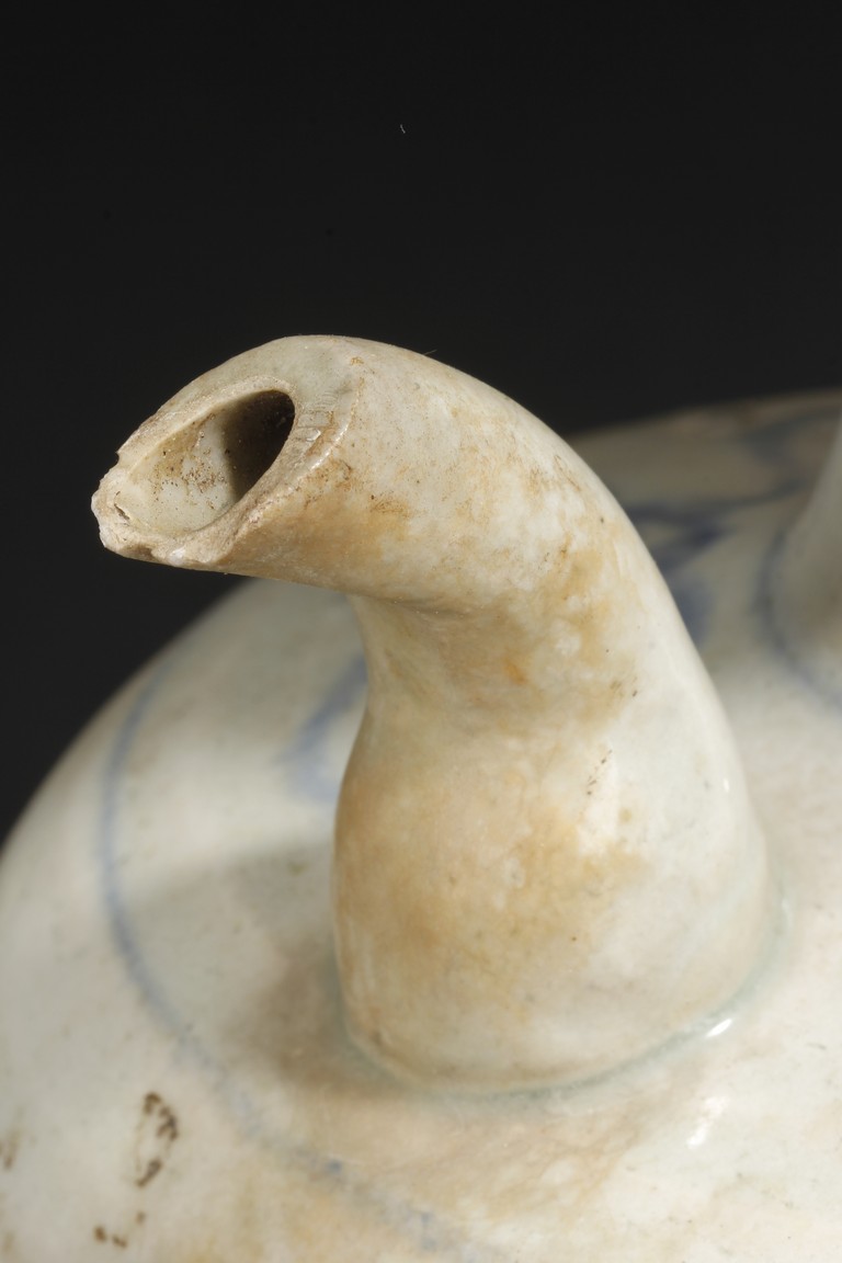 A BLUE AND WHITE WINE EWER 清 青花酒壺(嘴有破損)