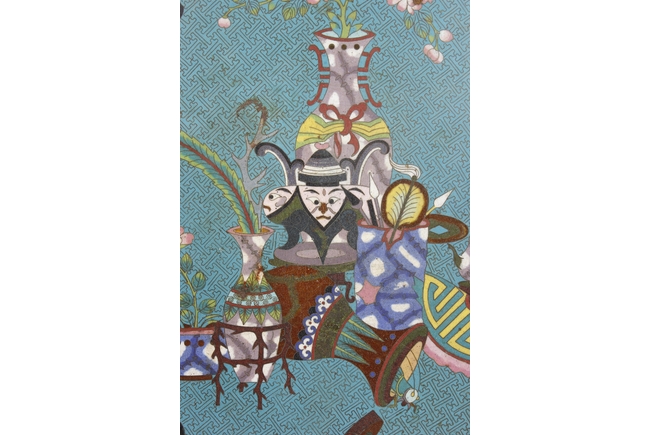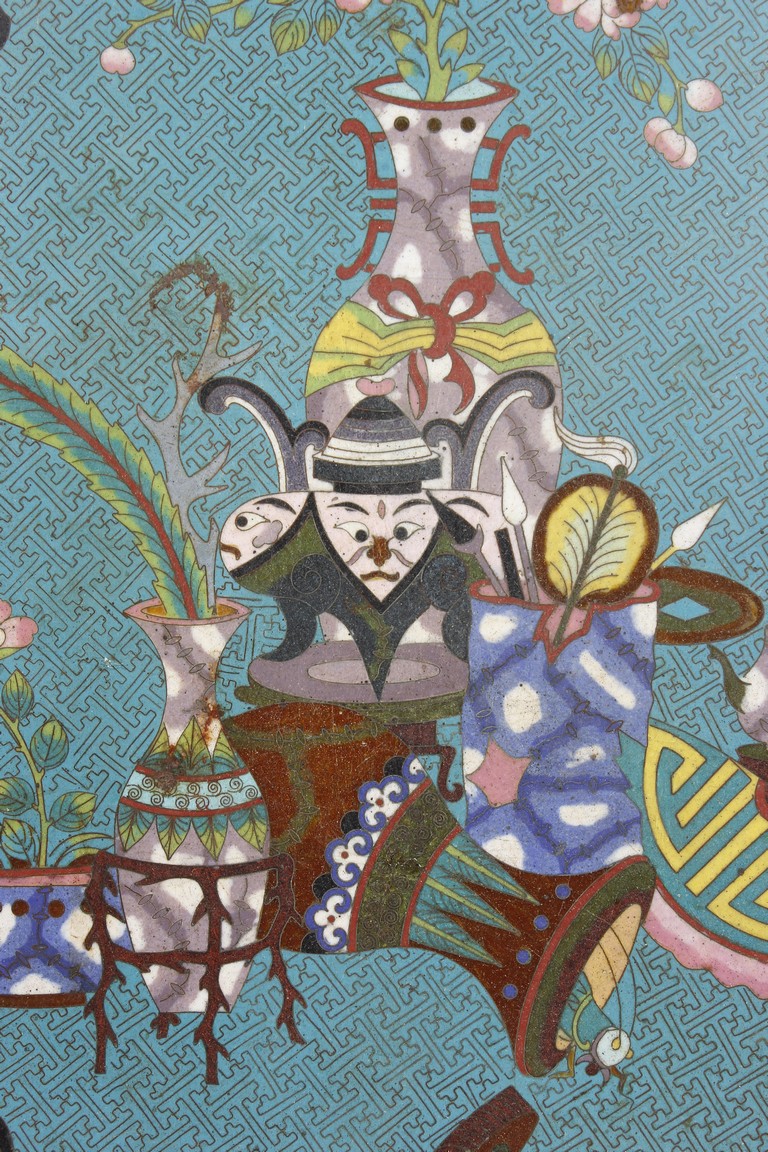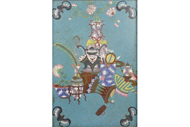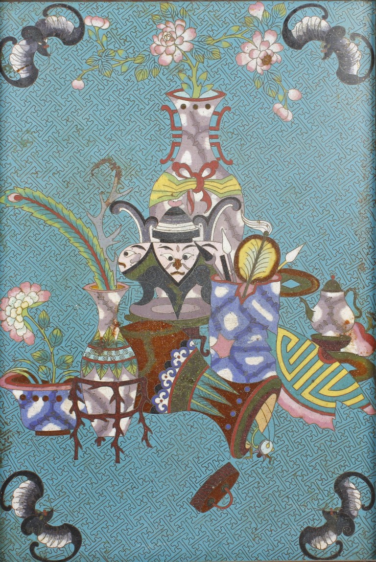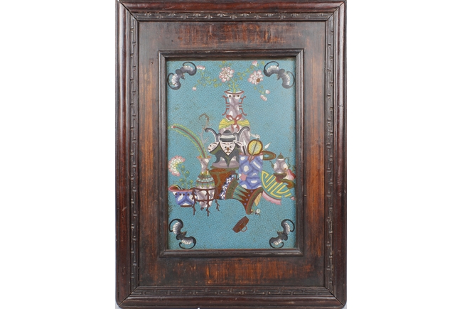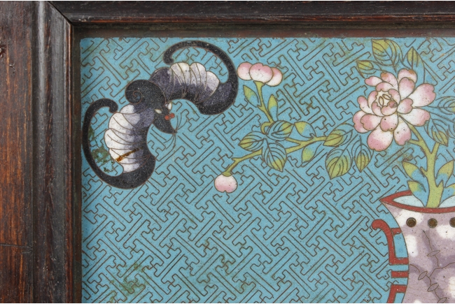 A FRAMED CLOISONNE ENAMEL FLOWERS PANEL 景泰藍壽字花卉掛屏一幅