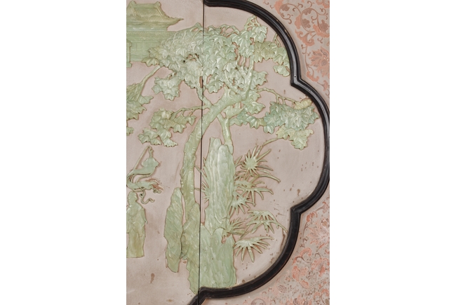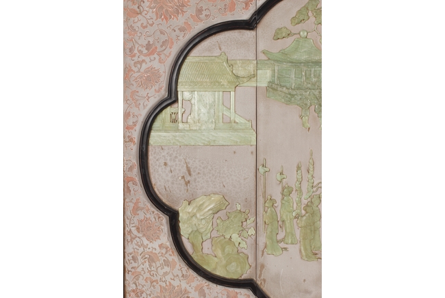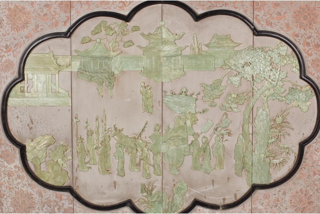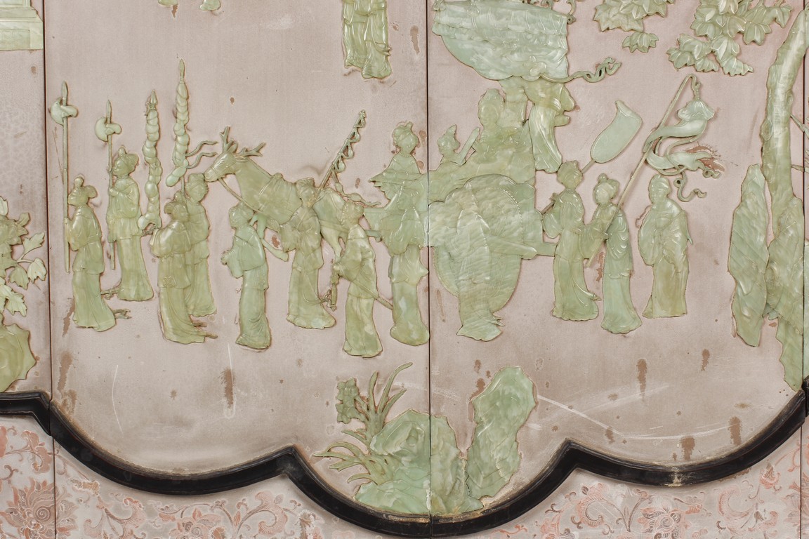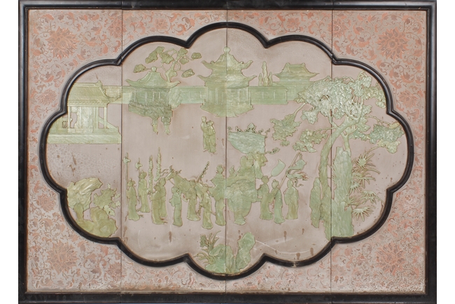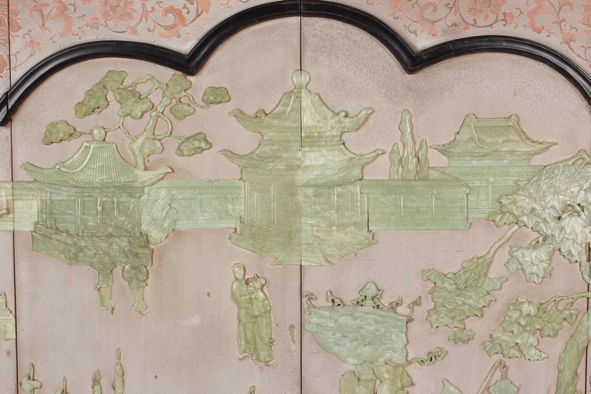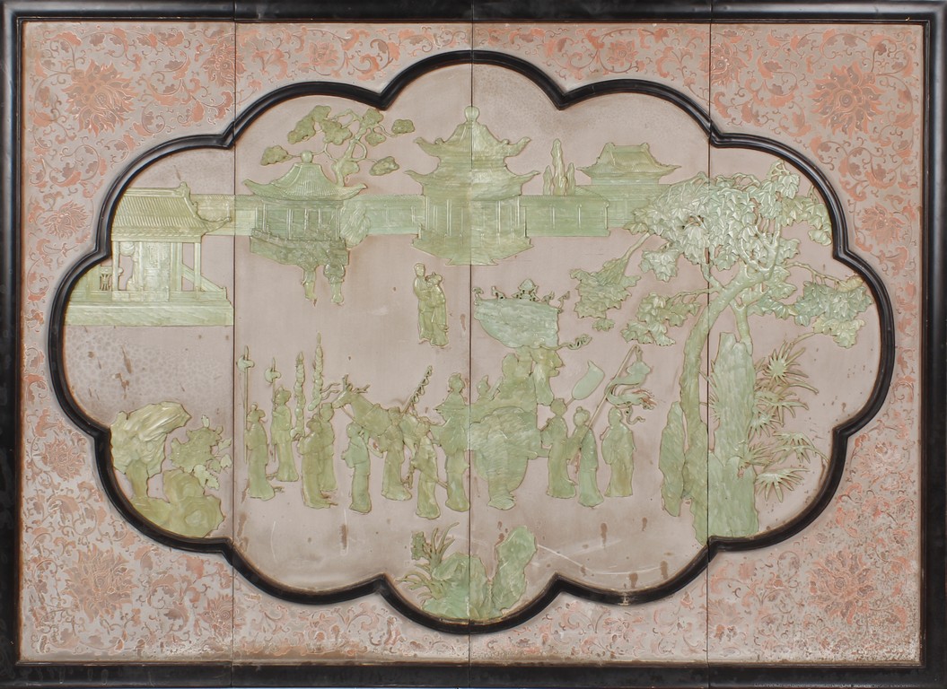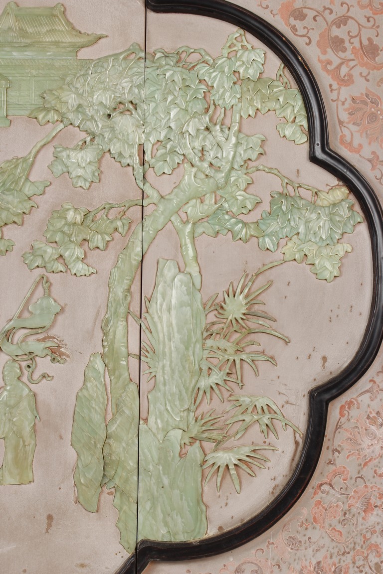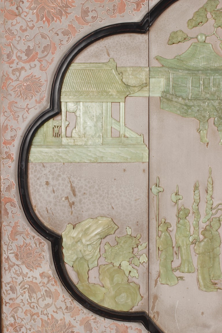 A JADE INLAID HANGING SCREEN 嵌玉人物樓閣掛屏
