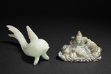 "A STONE CARVED FISH AND A “JIGONG"" FIGURE"