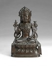 A CHINES BRONZE SEATED GUAN YIN FIGURE