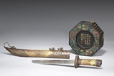 AN INK STONE WITH POEM AND AN ORNATE DAGGER