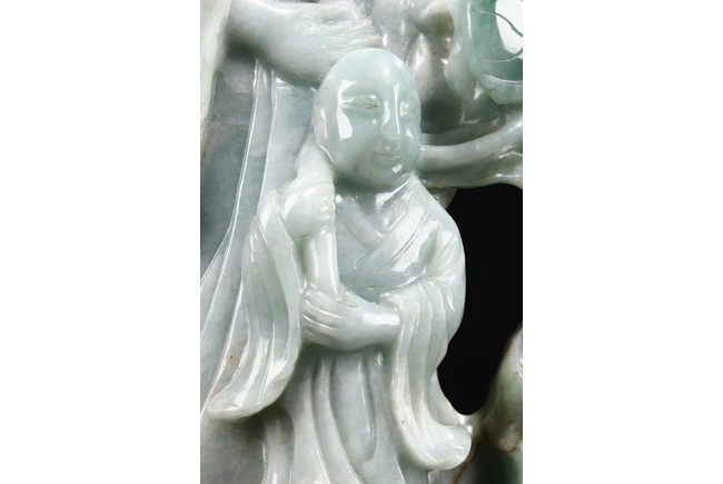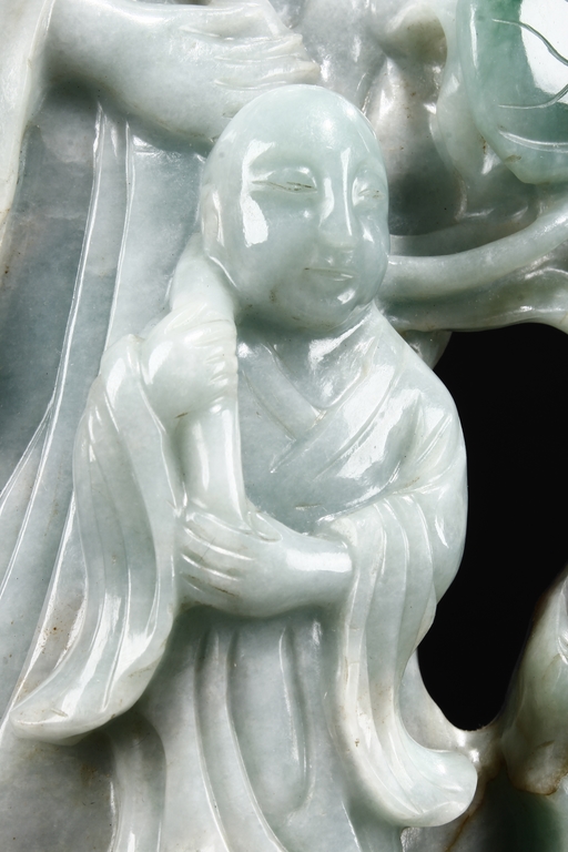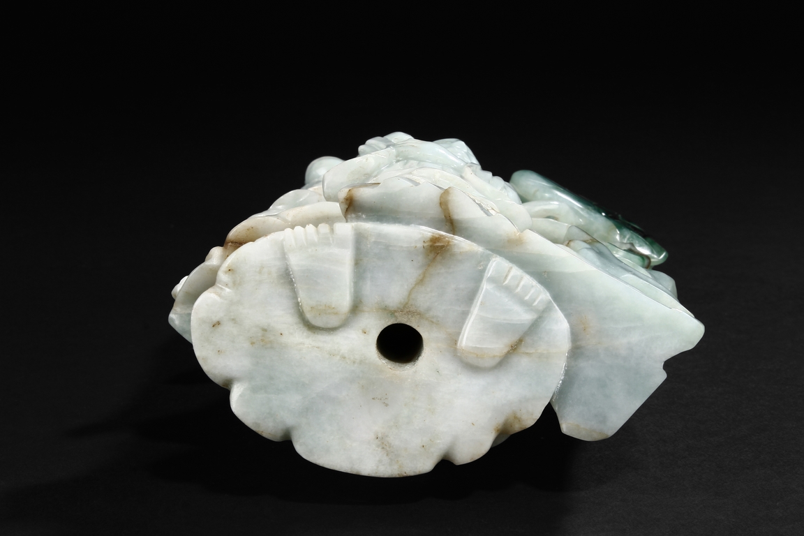 Compare to a jadeite carving of similar theme, sold in Sotheby’s New York on September 11, 2012, Lot 386.